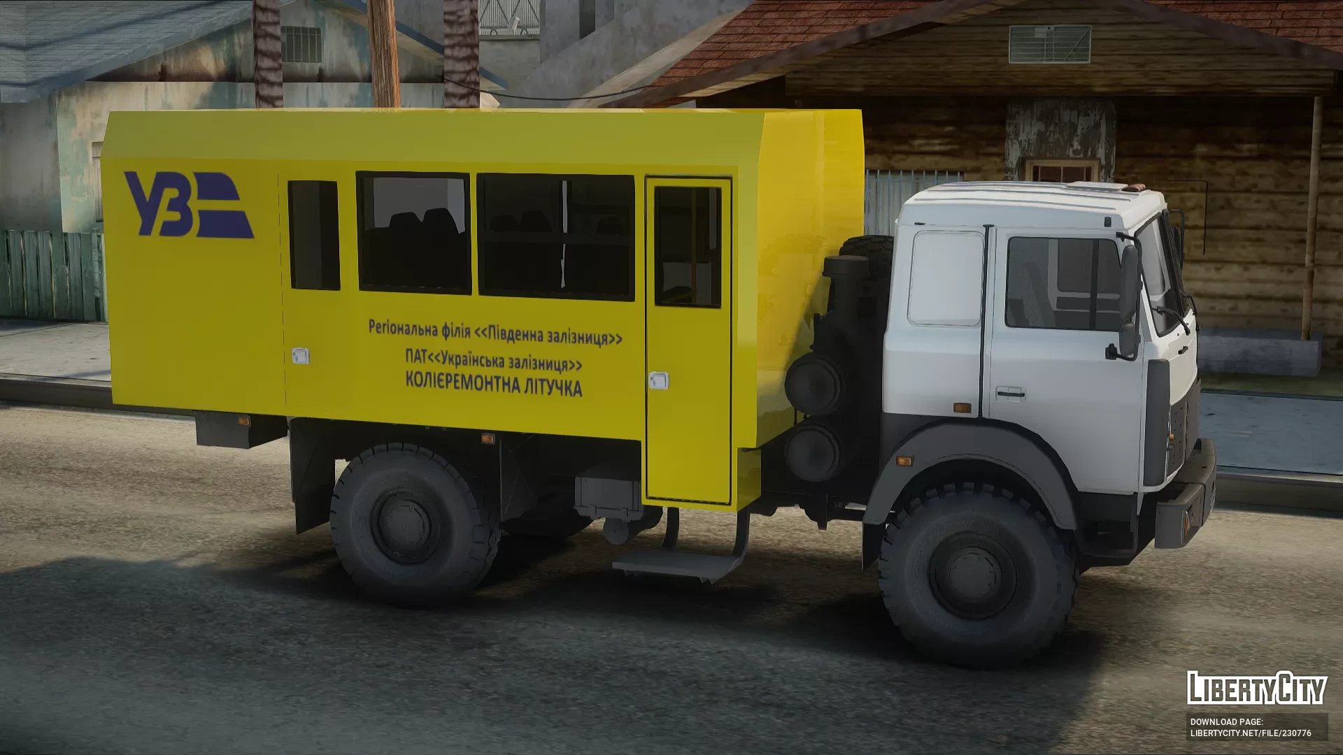 Этот МАЗ используется Украинской железной дорогой как служебный транспорт для перевозки ремонтных бригад и инструментов. Благодаря высокой проходимости и вместимости, он идеально подходит для обслуживания железнодорожной инфраструктуры на различных участках.