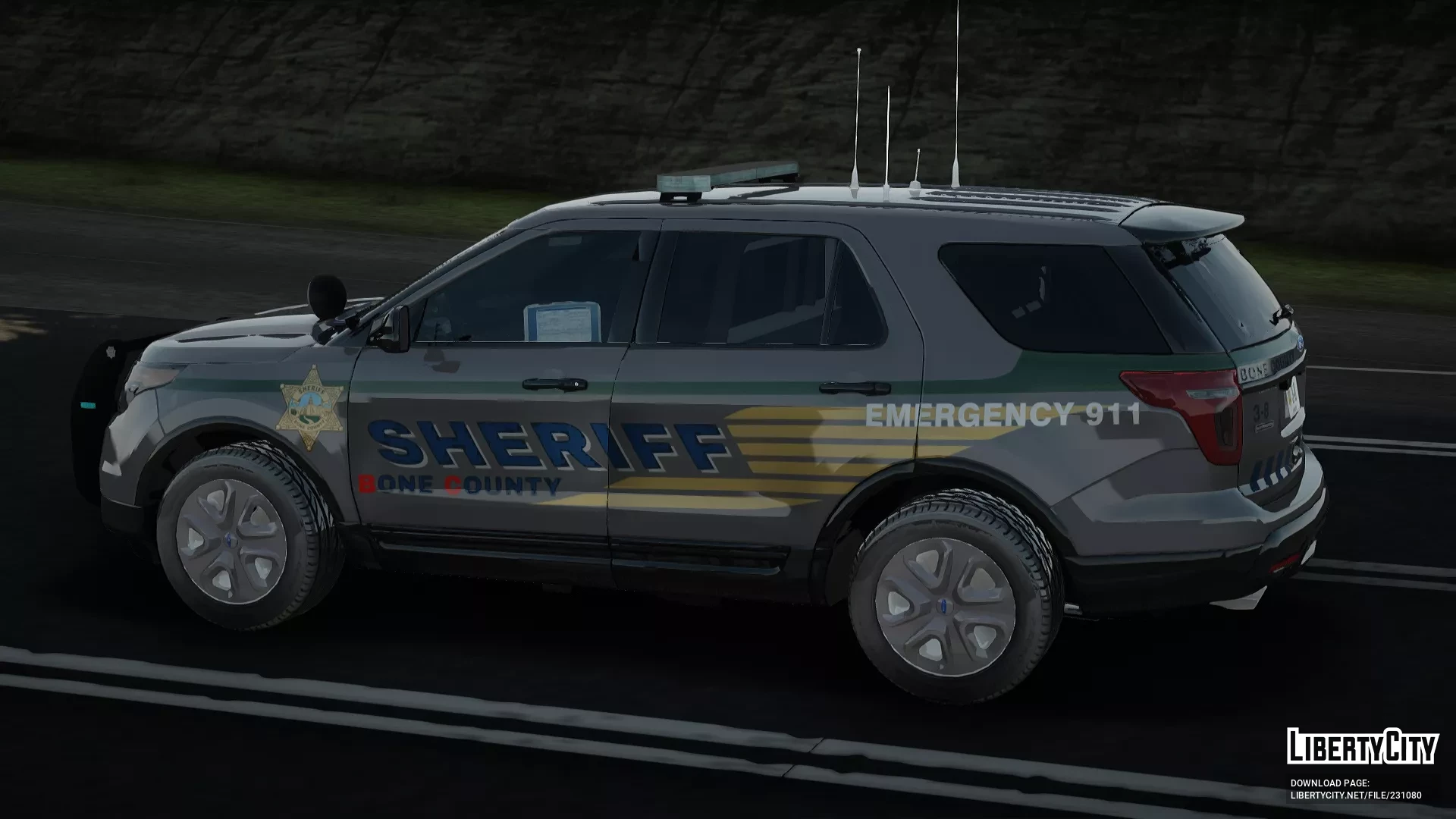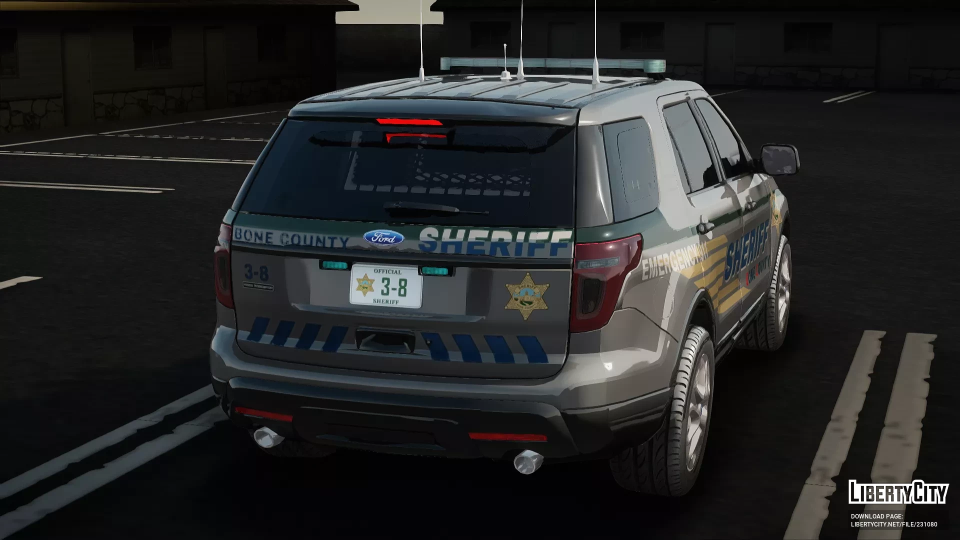 Ford Explorer 2013 Bone County Sheriff — это универсальный полицейский внедорожник, сочетающий просторный салон, отличную проходимость и современные технологии для патрулирования в округе Бон Каунти. Благодаря надёжности и мощному двигателю, этот автомобиль идеально подходит для работы в любых дорожных условиях.