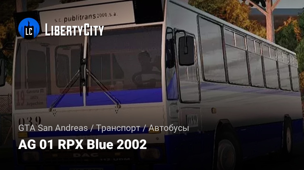 AG 01 RPX Blue 2002 is a city bus with a distinctive blue color scheme, released in 2002. It is designed for transporting passengers on urban routes and features a classic body design.