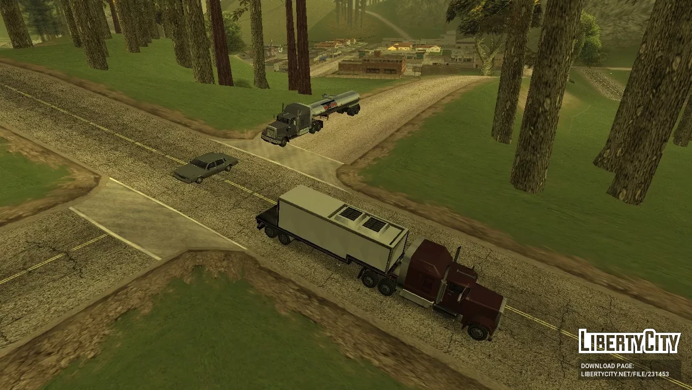 Этот мод добавляет реализму дорожному трафику в GTA San Andreas, заставляя грузовики появляться вместе с прицепами — как в реальной жизни. Теперь большинство грузовиков на дорогах будут перевозить груз, создавая более правдоподобную атмосферу на трассах и в сельской местности.