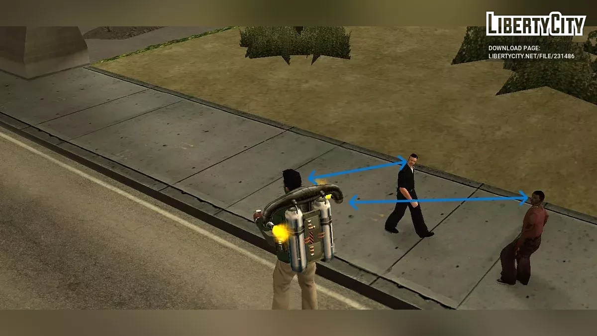В 90-х увидеть кого-то, летающего на джетпаке, было почти невозможно. Это было редкое и футуристическое зрелище, которое никто не ожидал увидеть на улицах Лос-Сантоса. С этим модом пешеходы наконец будут реагировать так, как это делают люди. Когда CJ использует джетпак, прохожие смотрят на него с удивлением и любопытством.