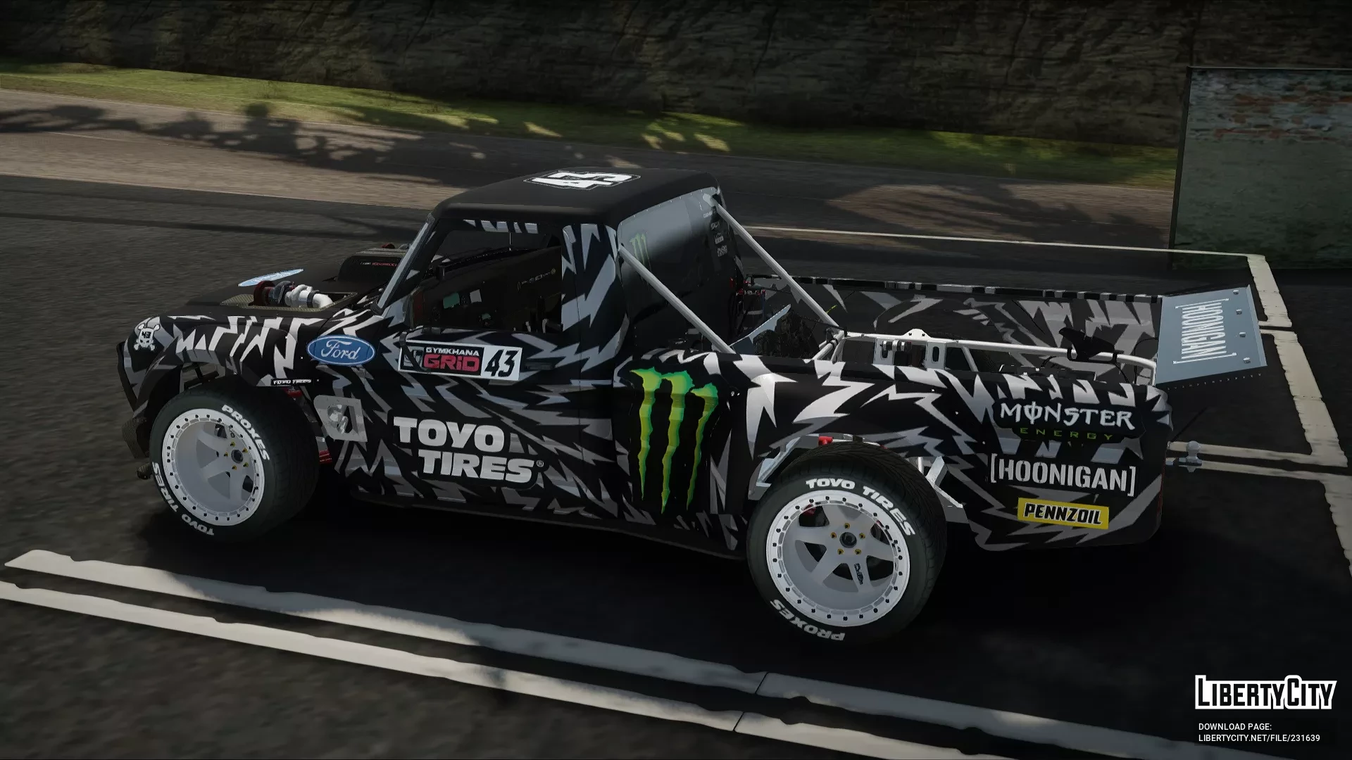 Ford F-150 Hoonitruck — это уникальный дрифт-пикап, созданный для Кена Блока на базе классического Ford F-150. Автомобиль оснащён мощным твин-турбо двигателем и отличается агрессивным дизайном, специально разработанным для экстремальных трюков и выступлений в Gymkhana.