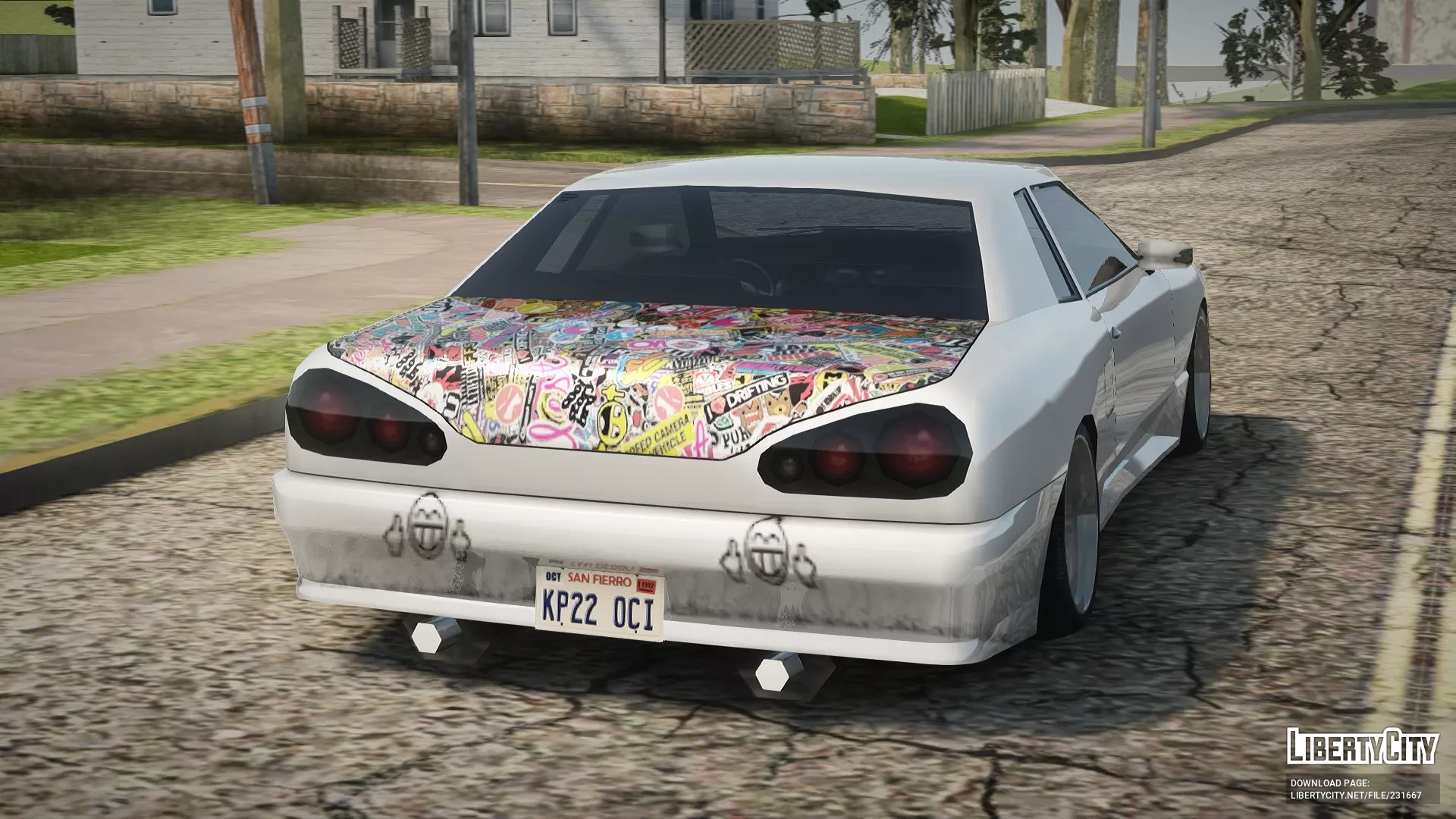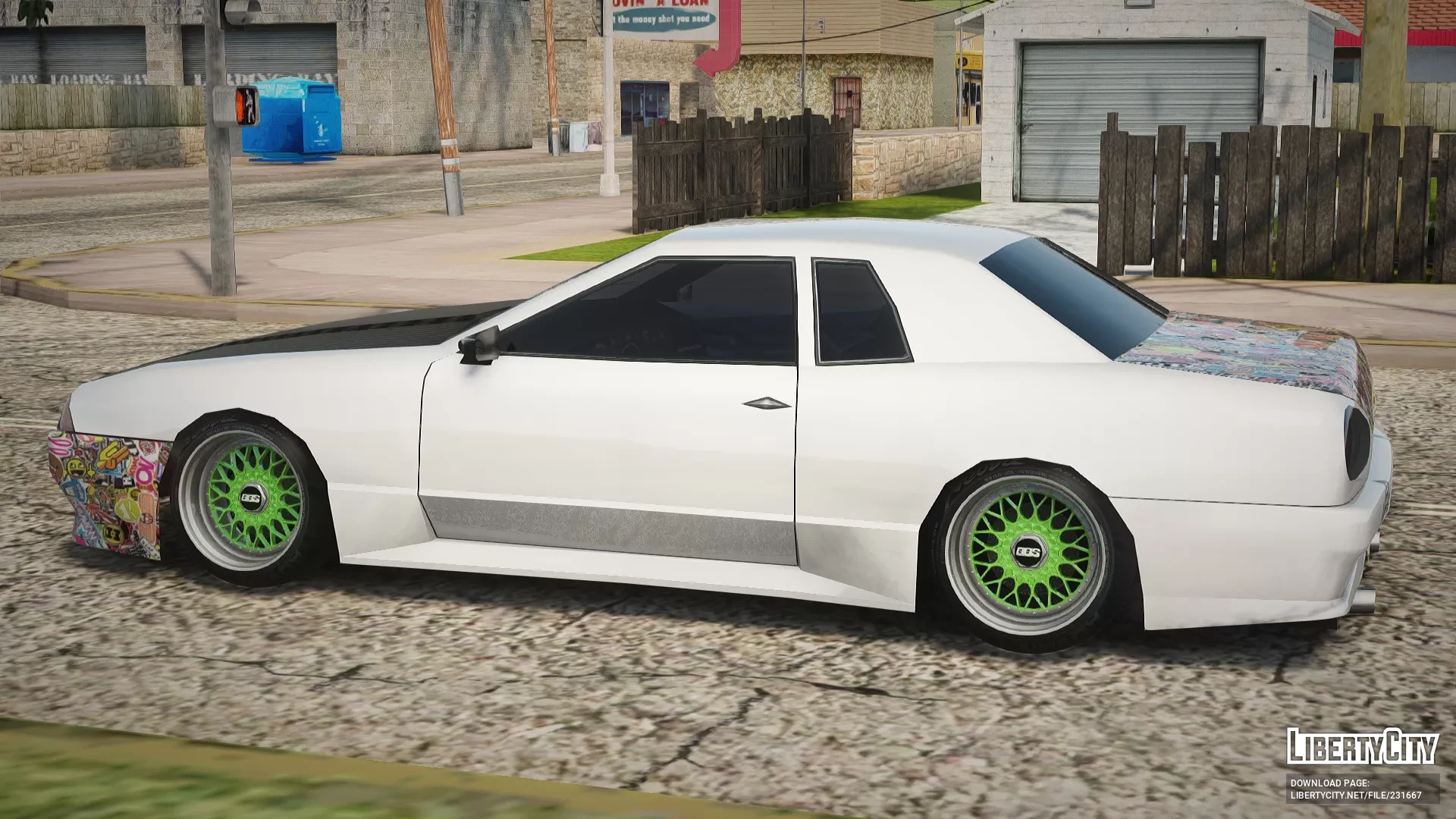 Elegy JDM Style — это японский спорткар, оформленный в духе JDM-культуры: с карбоновым капотом, яркими зелёными дисками и бампером, украшенным стикербомбингом. Такой тюнинг подчёркивает индивидуальность владельца и отлично подходит для уличных гонок и автособытий.