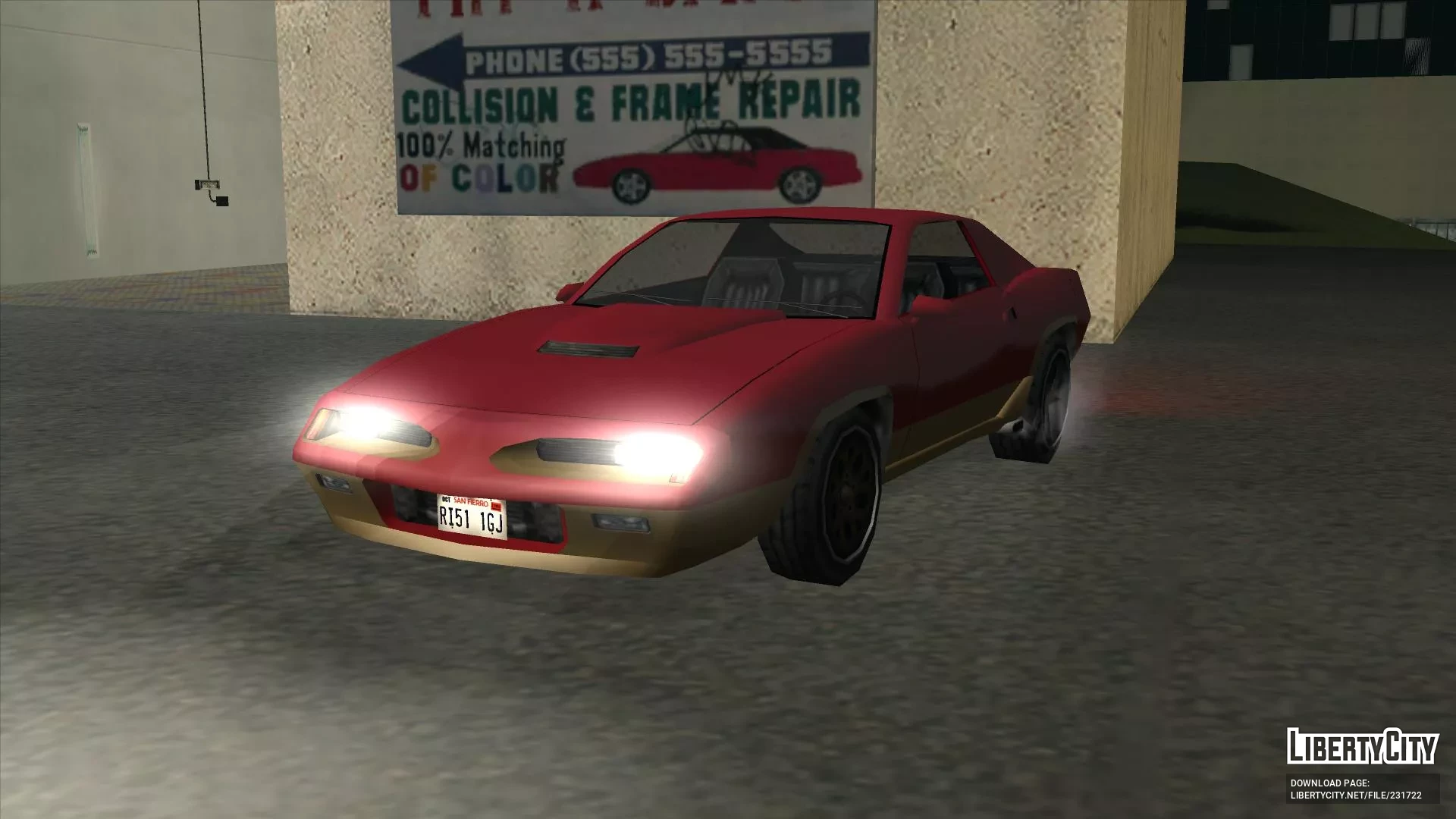 Сделан с нуля при использовании ассетов от Rockstar Games. Имеет стиль SA, собственные коллизию, LOD, тень. Основан на Pontiac Firebird третьего поколения.