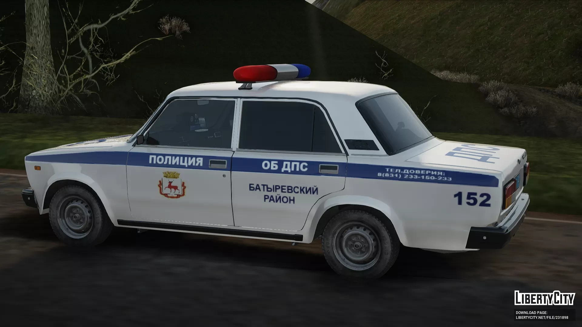 Качественный ВАЗ 2107 ДПС для GTA SA. Особенности: - Рабочая сирена, мигалки; - Хорошая модель повреждений; - Реалистичный свет фар; - Собственная тень; - HQ салон; - 3D двигатель. ...