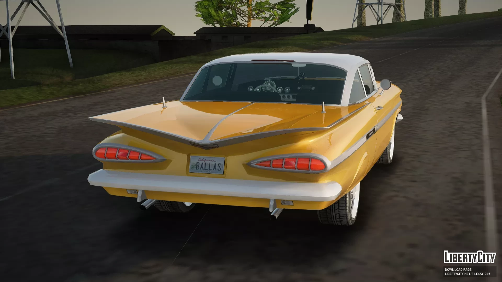 Chevrolet Impala 1959 — это культовый американский автомобиль, отличающийся выразительным дизайном с плавными линиями, широкими хвостовыми плавниками и роскошным интерьером. Эта модель стала символом стиля и элегантности эпохи 1950-х годов.