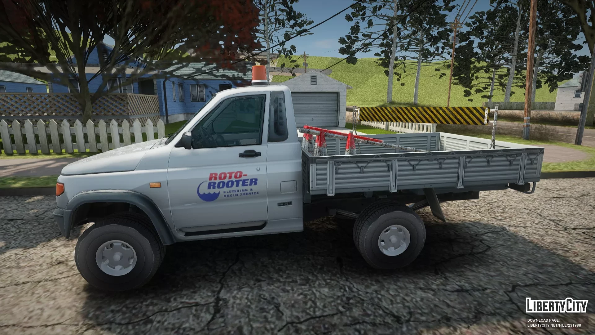 УАЗ 2360 Roto-Rooter — это утилитарный российский пикап, оформленный в стиле сервисного автомобиля компании Roto-Rooter, специализирующейся на сантехнических и дренажных услугах. Машина оснащена проблесковыми маячками и необходимым инвентарём в кузове, что делает её отличным выбором для работы в городских и сельских условиях.