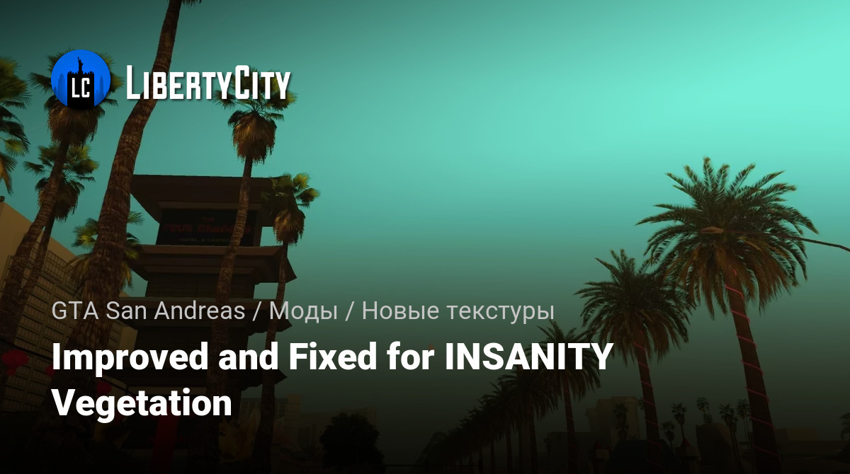 Этот мод улучшает и добавляет больше разнообразия пальмам и другим деревьям в INSANITY. Исходный мод забыл изменить некоторые модели деревьев и пальм, но я это исправил,
