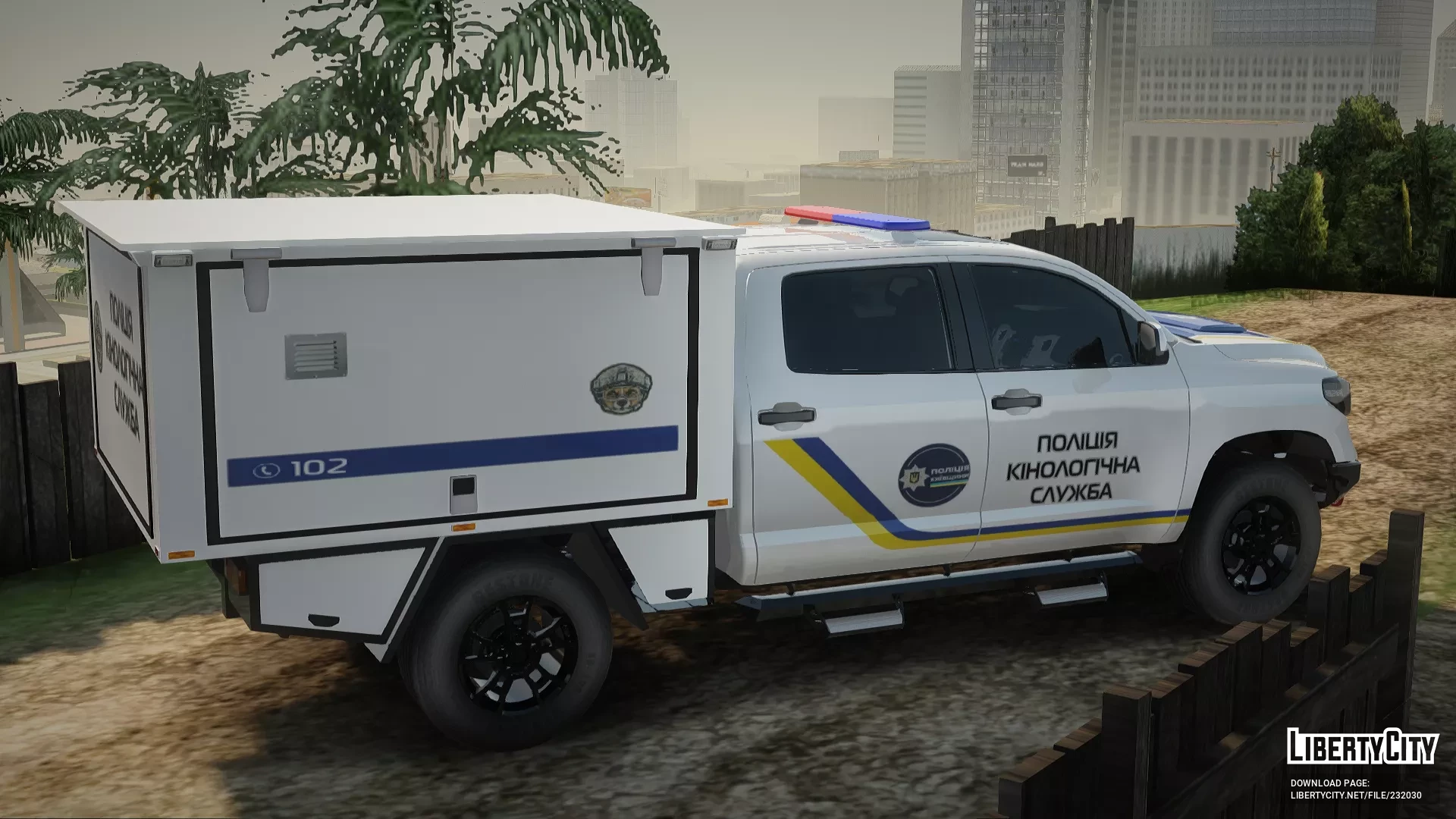 Toyota Tundra Полиция Украины Кинологи — это специализированный автомобиль, используемый кинологической службой украинской полиции для перевозки служебных собак. Машина оснащена всем необходимым для комфортной и безопасной транспортировки животных.