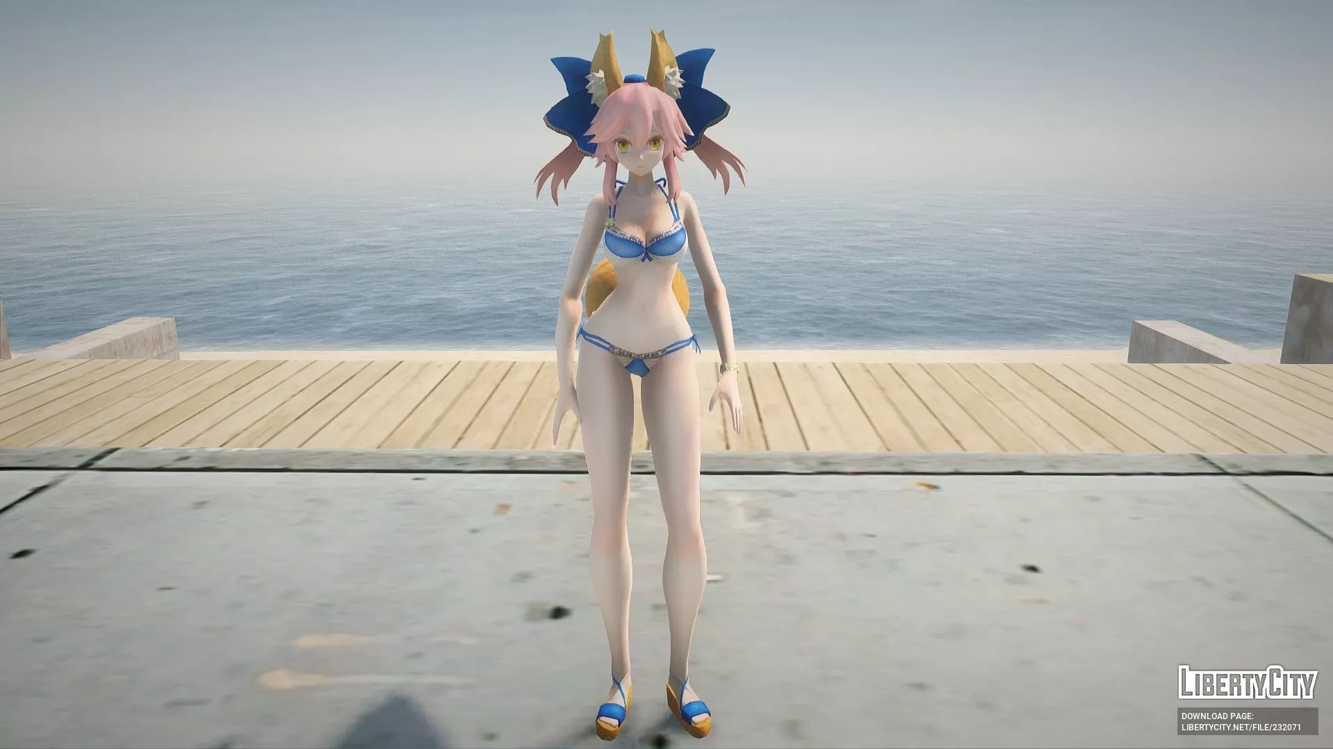 В альтернативном купальном костюме Тамамо одета в раздельный синий бикини с золотистой отделкой и бантиками. На ногах — сандалии на платформе. Даже в этом образе у неё сохраняются лисьи уши и пушистый хвост, а волосы украшены тем же большим бантом.