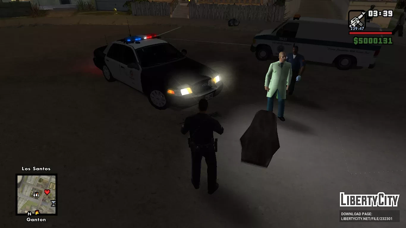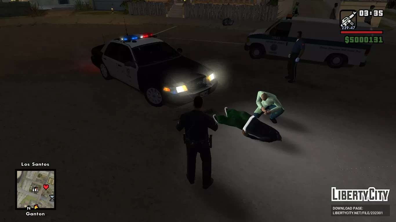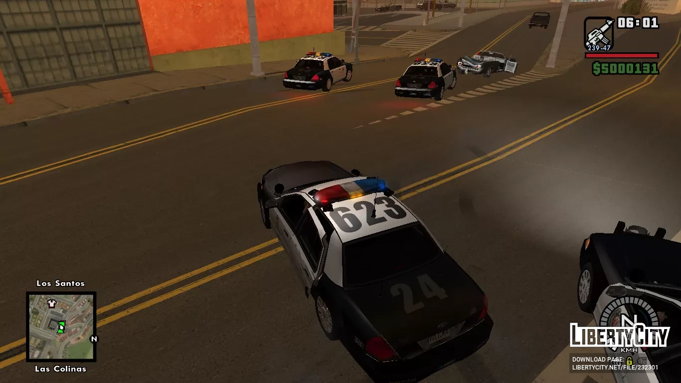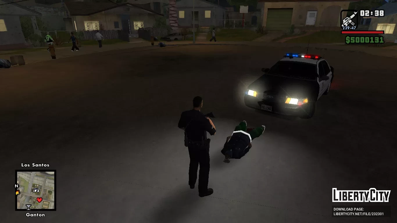 Police simulation mod for GTA San Andreas (PC) that turns the player into an active law enforcement officer within the game world. The mod allows players to patrol the city, stop pedestrians and vehicles, respond to emergency calls, engage in pursuits, arrest suspects, and use a variety of police-related tools and mechanics.