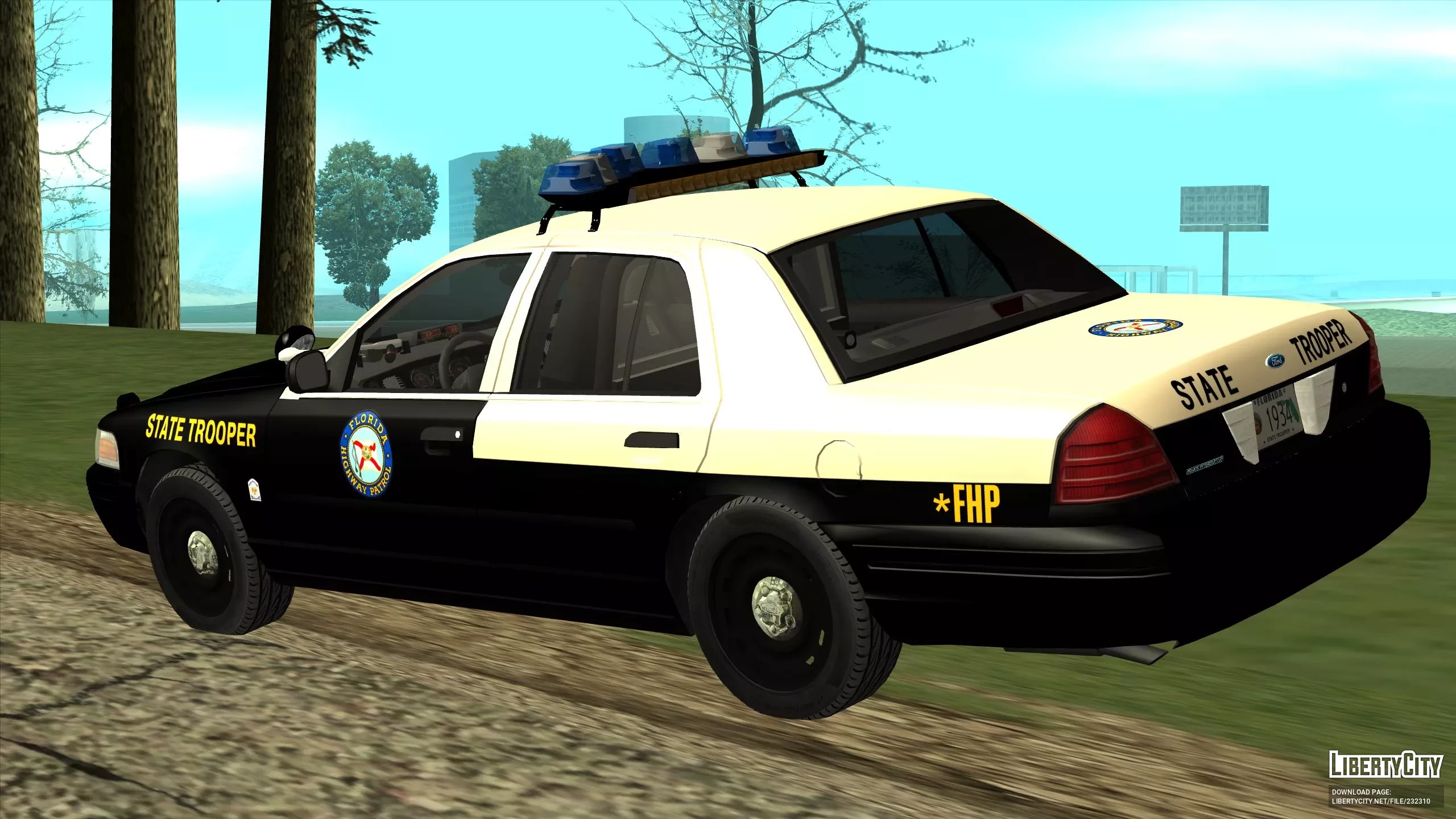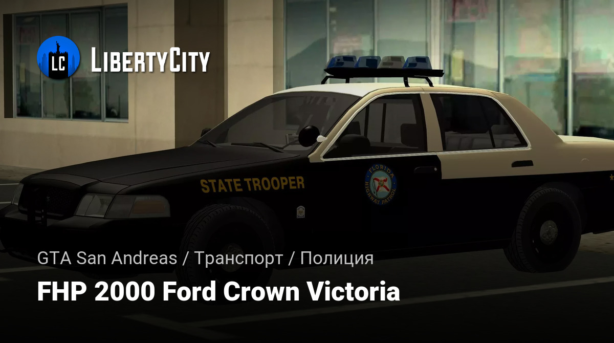 FHP 2000 Ford Crown Victoria — это служебный автомобиль дорожной полиции штата Флорида, известный своей надежностью и вместительностью. Он часто использовался для патрулирования дорог и сопровождения на длинные дистанции.