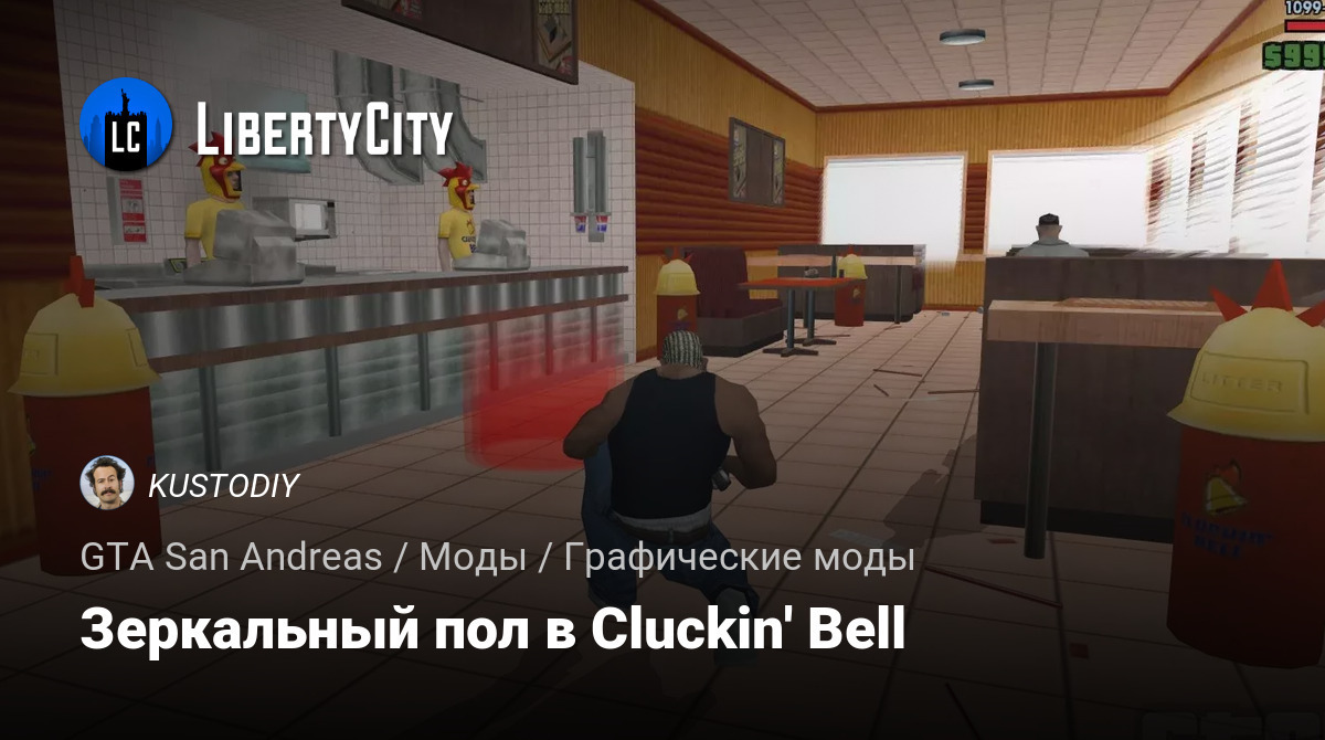 Данный мод исправляет визуальную особенность интерьера Cluckin' Bell в классических версиях GTA San Andreas (PC, PS2, Xbox).