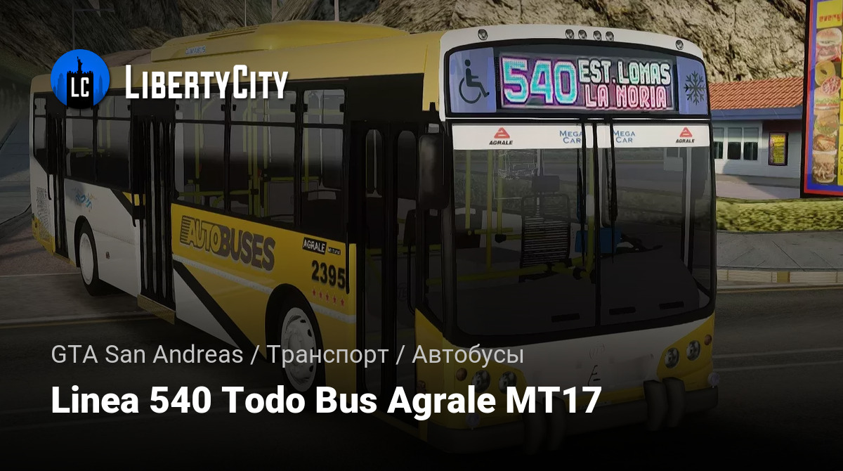 Linea 540 Todo Bus Agrale MT17 — это городской автобус, использующий шасси Agrale MT17 и кузов от Todo Bus, популярный на маршрутах общественного транспорта в Латинской Америке. Он отличается вместимостью, удобством для пассажиров и надёжностью в эксплуатации.
