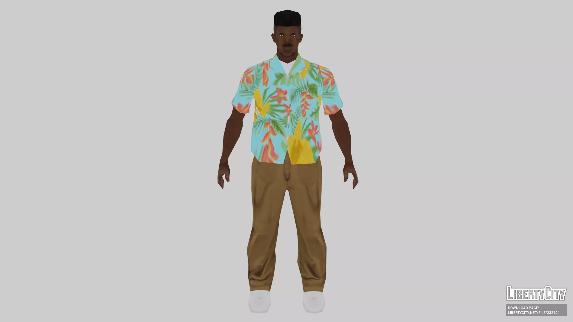 Featuring colorful tropical patterns and clean textures. The shirt has a relaxed fit, shows no texture stretching, and is fully compatible with all in-game animations. - Chinos pants