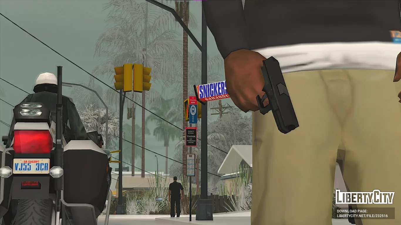 Представляем G17 с магазином, обернутым в упаковку SNICKERS, изначально известный как "GLOCK", это бренд полуавтоматических пистолетов, производимых австрийским производителем Glock GmbH, разработанный Гастоном Глоком в 1979 году, мод заменяет Colt45 в игре.