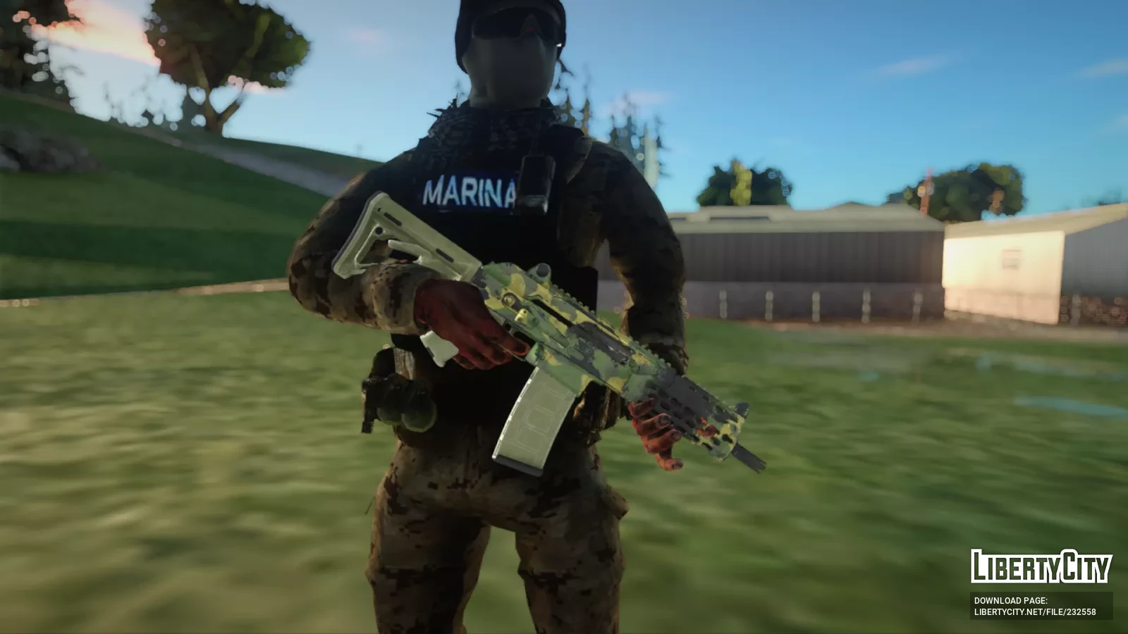 В сборке лежит такое оружие, как: АК (в камуфляже), золотой АК-47, FN FAL с подствольником, HK416, M4 в красно-белом скине. Всё оружие в очень высоком качестве! Скина изображенного на фотографиях в комплекте нет!