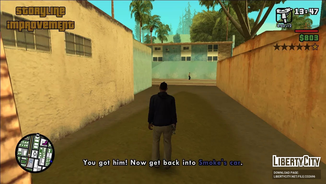 Storyline Improvement — это комплексное улучшение для Grand Theft Auto: San Andreas, разработанное как тщательно сбалансированный гибрид Story Mode 2.0 и Things To Do in San Andreas. Модификация расширяет сюжет игры, восстанавливая дополнительные вырезанные диалоги и взаимодействия персонажей, что приводит к более полному, захватывающему и целостному повествованию, при этом полностью сохраняя игровые функции, представленные в Story Mode 2.0.