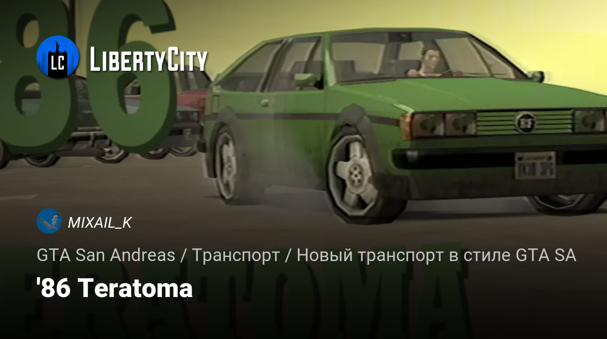 1986 Teratoma — Немецкий хэтчбэк, прямиком из прейсподни! Именно туда ссыпится ваш позвоночник на первой кочке, благодоря жёсткой и низкой подвеске! Довольно надёжен и хорош в управлении.