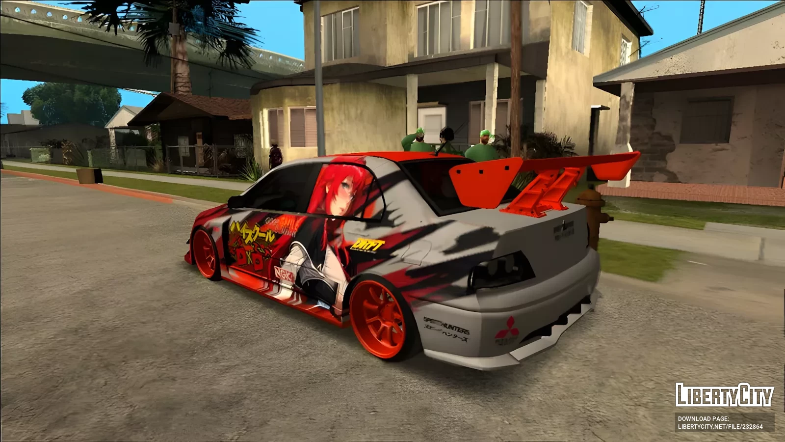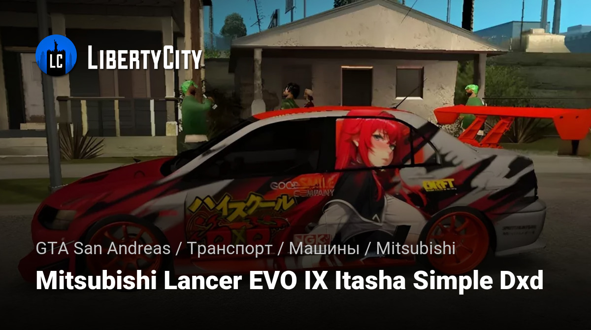 Mitsubishi Lancer EVO IX Itasha Simple Dxd — это спортивный седан, украшенный аниме-артом из серии High School DxD. Такой стиль оформления называется "иташа" и очень популярен среди фанатов японской культуры и тюнинга. Машина выделяется яркой графикой, броскими дисками и агрессивным аэродинамическим обвесом.