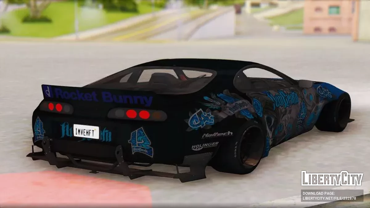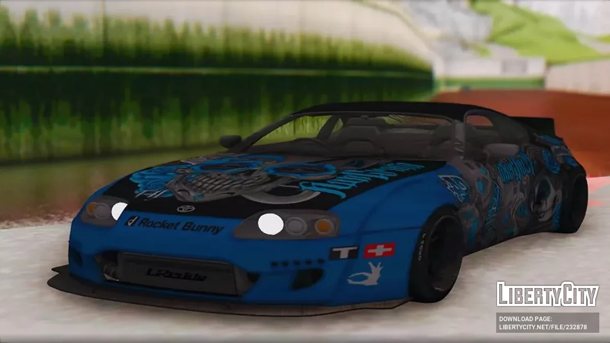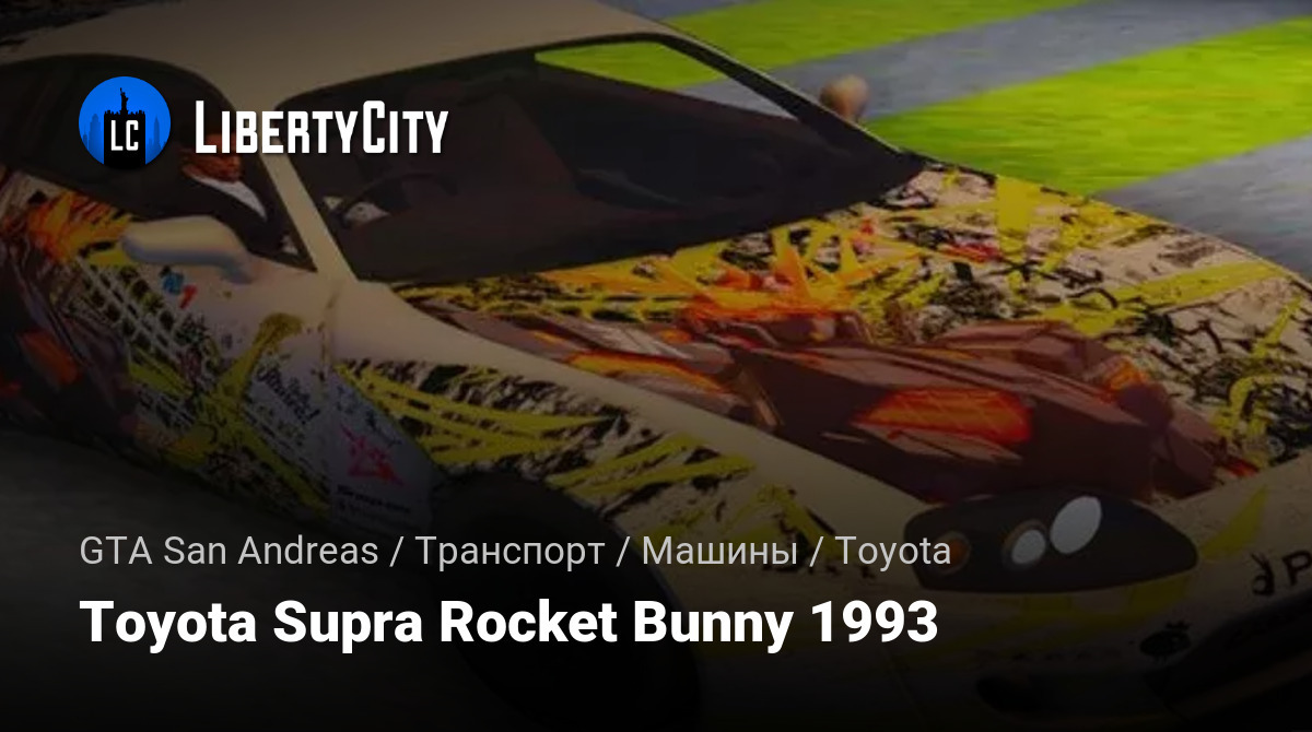 Toyota Supra Rocket Bunny 1993 — это легендарное японское спортивное купе, оснащённое широким обвесом Rocket Bunny и ярким аниме-артом на кузове. Такой тюнинг подчёркивает агрессивный стиль автомобиля и его ориентацию на дрифт и уличные гонки. Supra Rocket Bunny особенно популярна среди поклонников японской автокультуры и кастомизации.