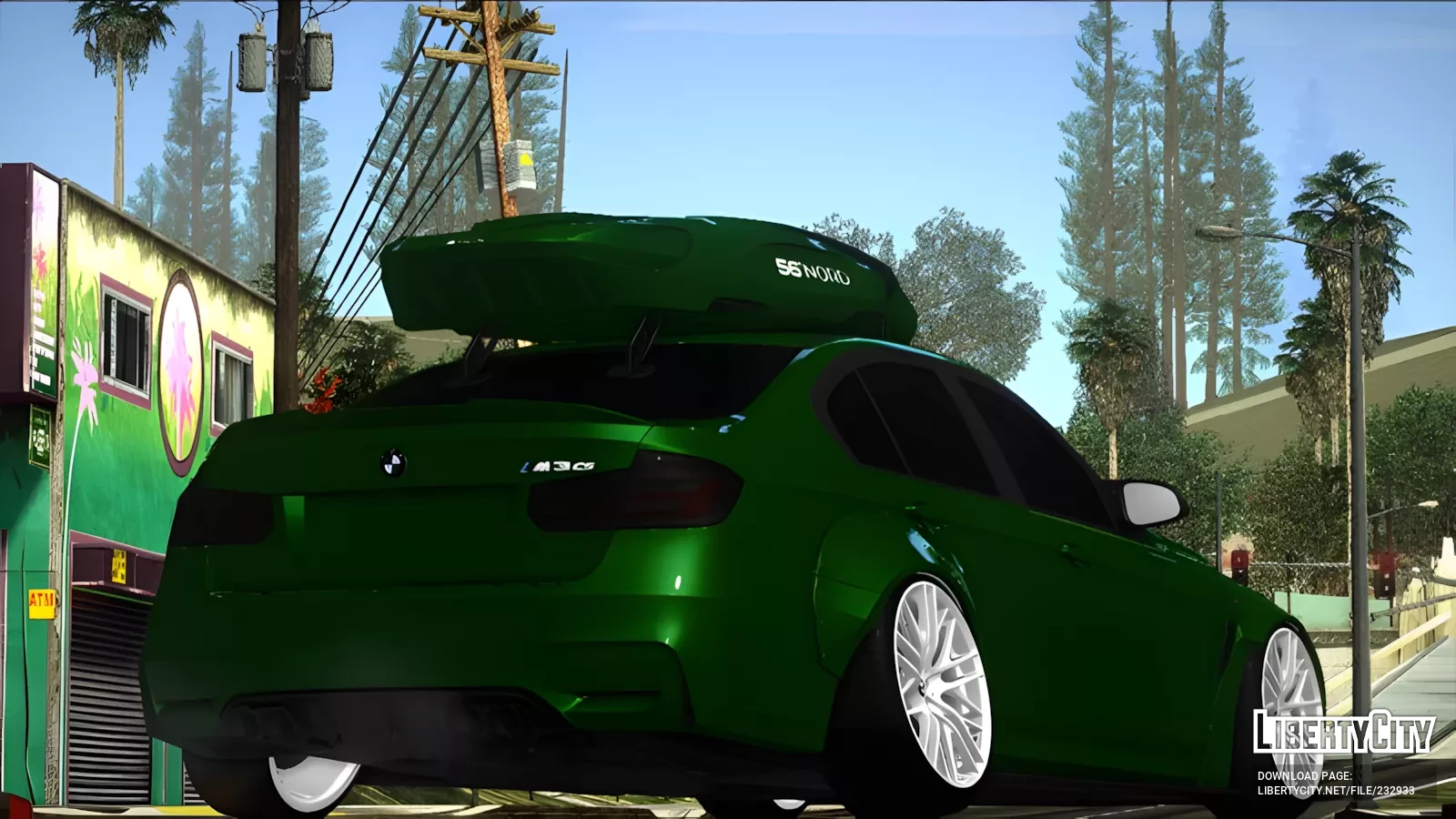 BMW M3CS — это спортивный седан с агрессивным тюнингом и заниженной подвеской, дополненный стильными белыми дисками и багажником на крыше. Такой автомобиль отлично подойдёт для тех, кто ценит сочетание мощности, практичности и эффектного внешнего вида.