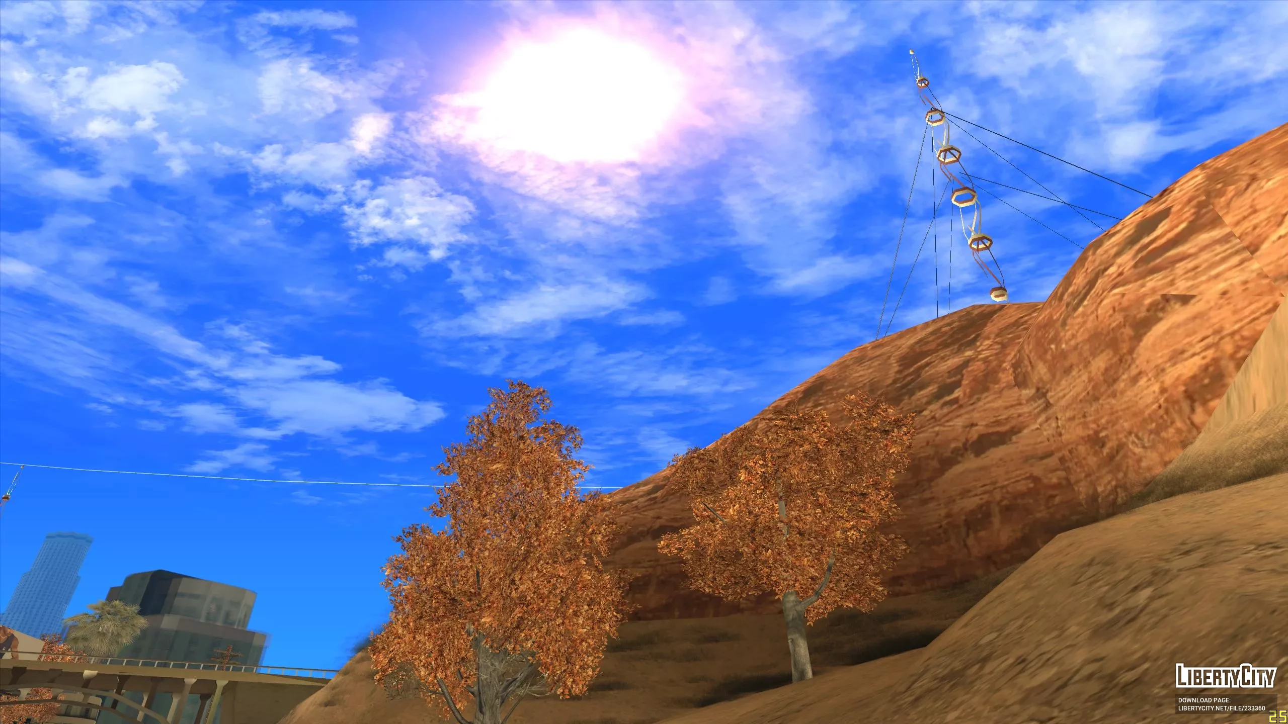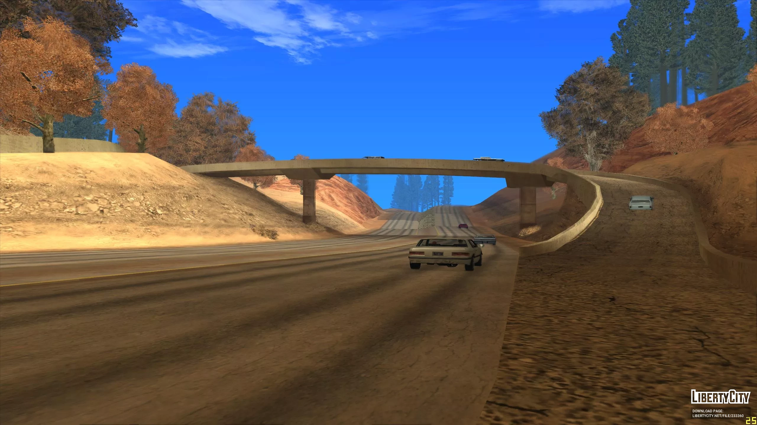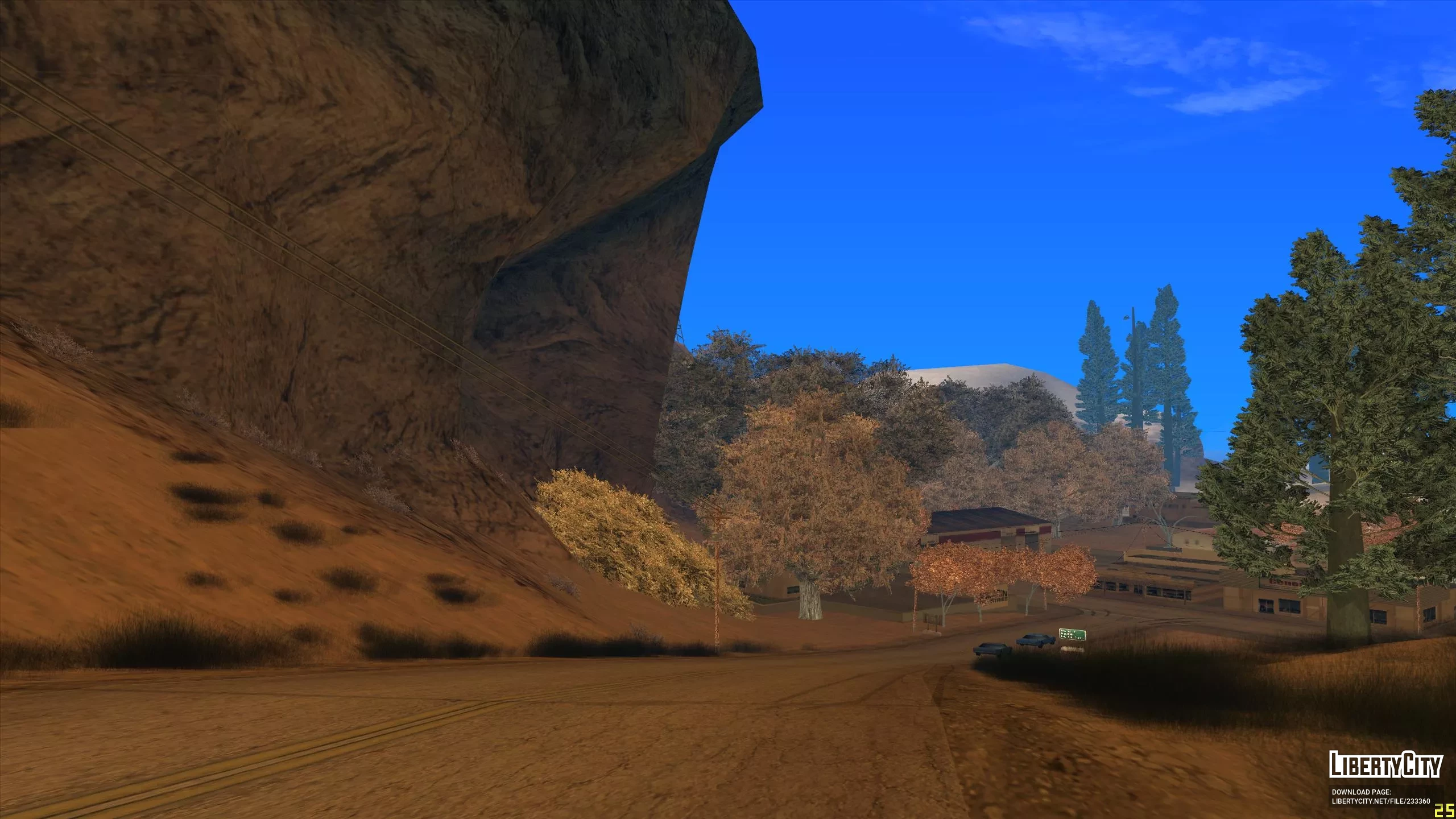 Этот мод расширит пустыню до Лос Сантоса и всех районов сельской местности. Если тебе надоели травяные покровы, то этот мод для тебя. Теперь все второстепенные дороги превратились в песочные, а скалистая порода в пустынные горы. Если этот мод совместить с модом на осенние деревья, то получиться не плохо. Текстуры не мерцают и не пропадают.