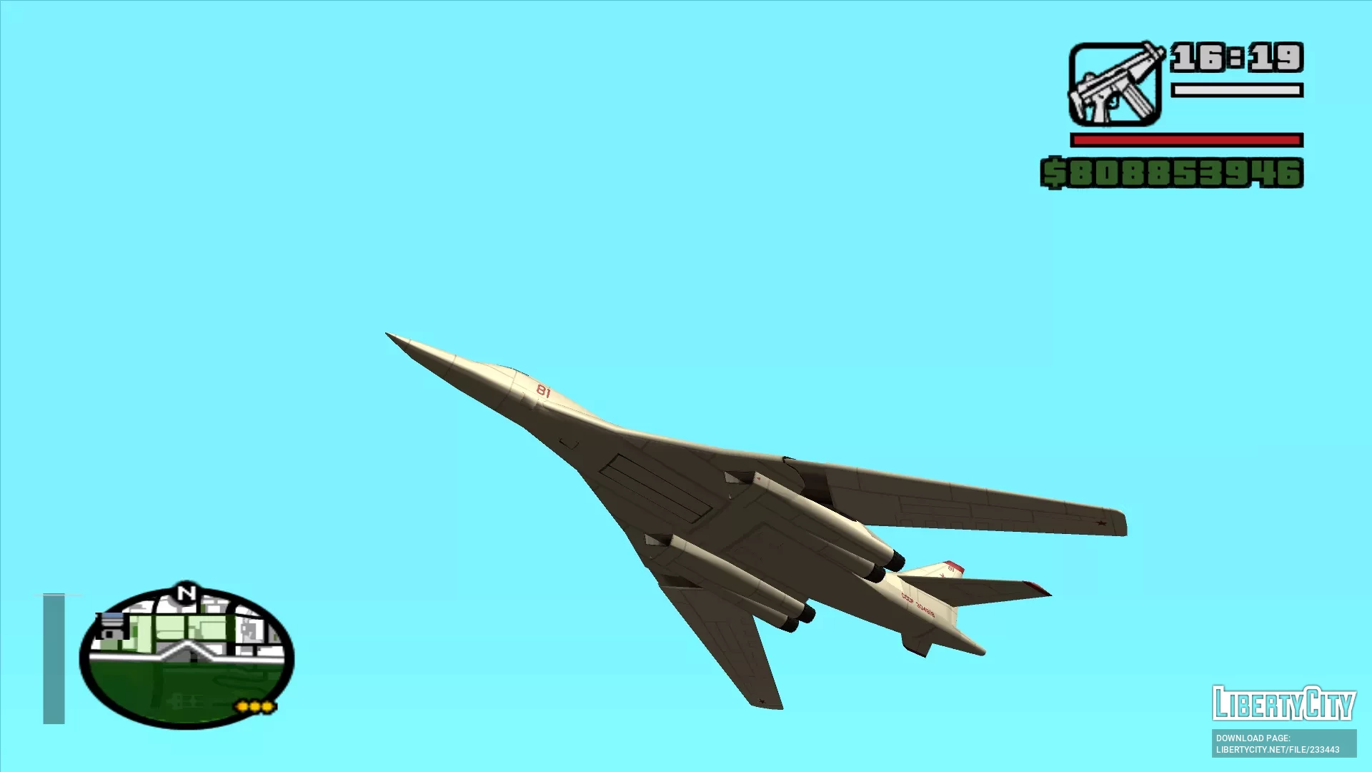 Сделан с нуля при использовании ассетов от Rockstar Games. Имеет стиль SA, собственные коллизию, LOD, тень. Создан на основе сверхзвуковых бомбардировщиков Туполев Ту-160 и Rockwell B-1 Lancer.