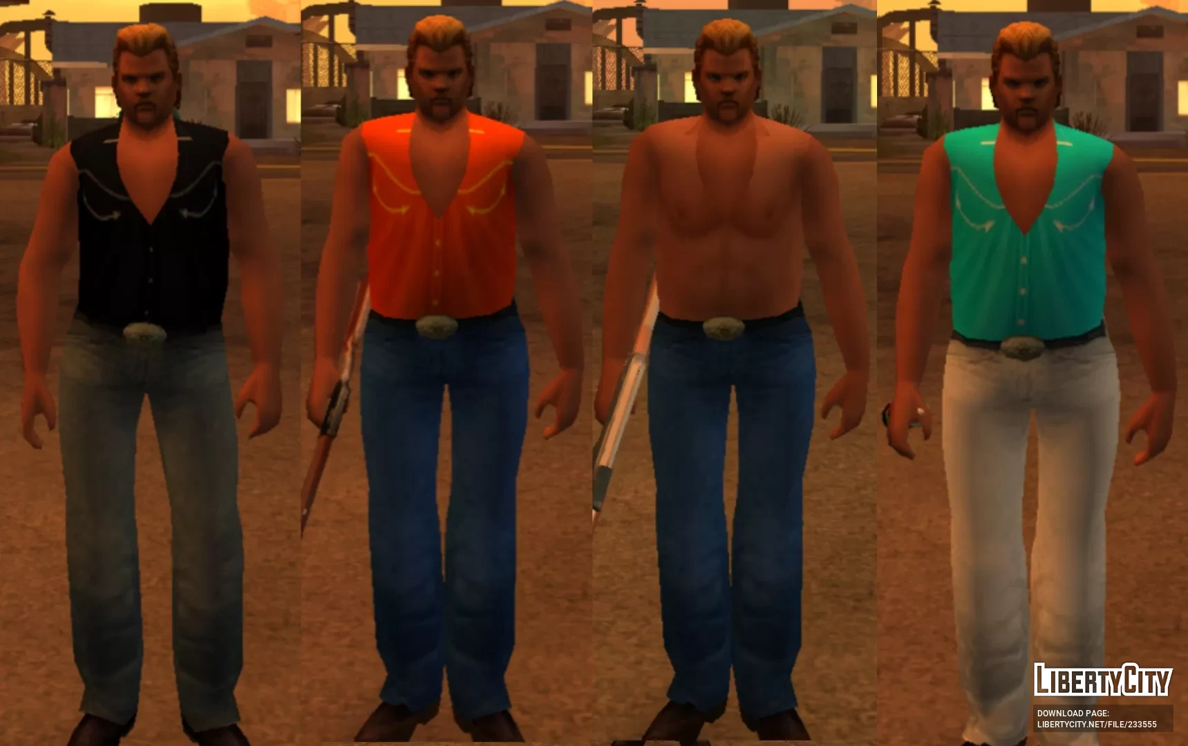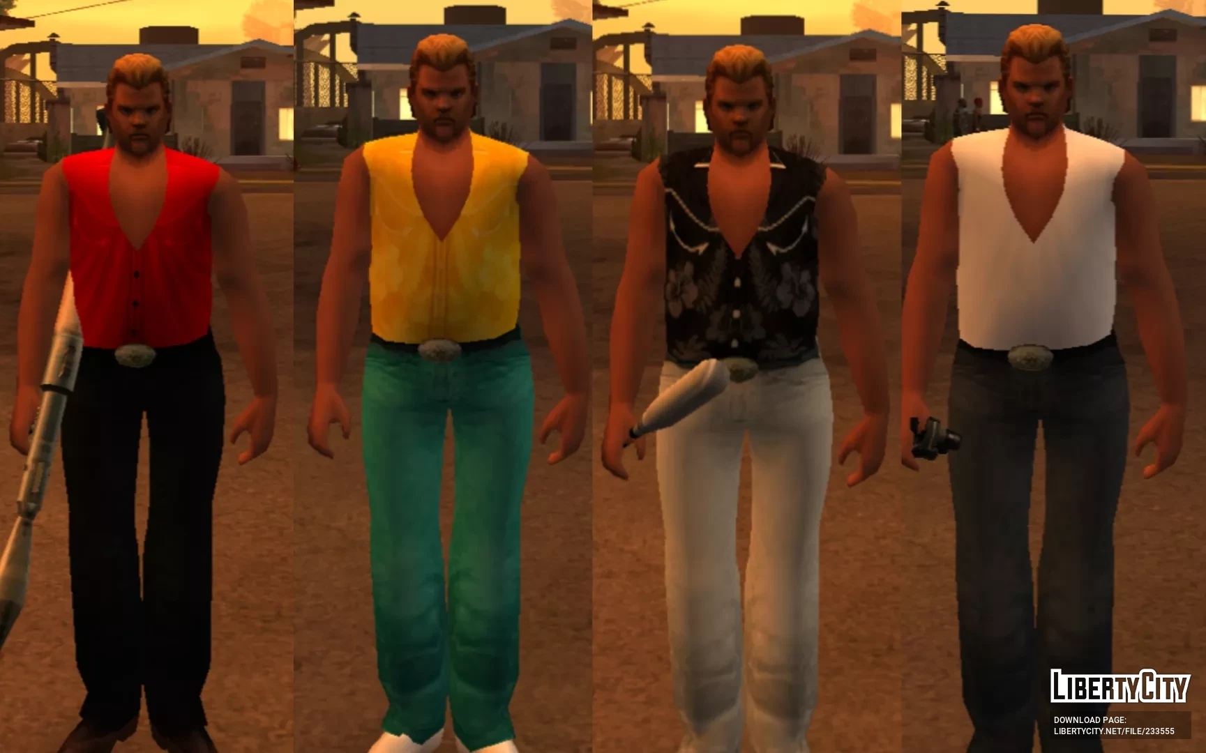 This is a fan-made skin pack for GTA: San Andreas featuring 17 different outfit variations for Phil Cassidy from VC and VCS.