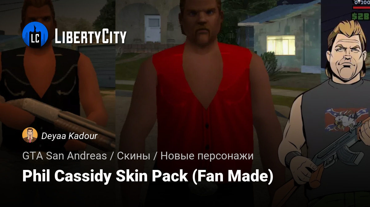 Это пакет скинов, созданный фанатами, для GTA: San Andreas, включающий 17 различных вариантов нарядов для Фила Кэссиди из VC и VCS.