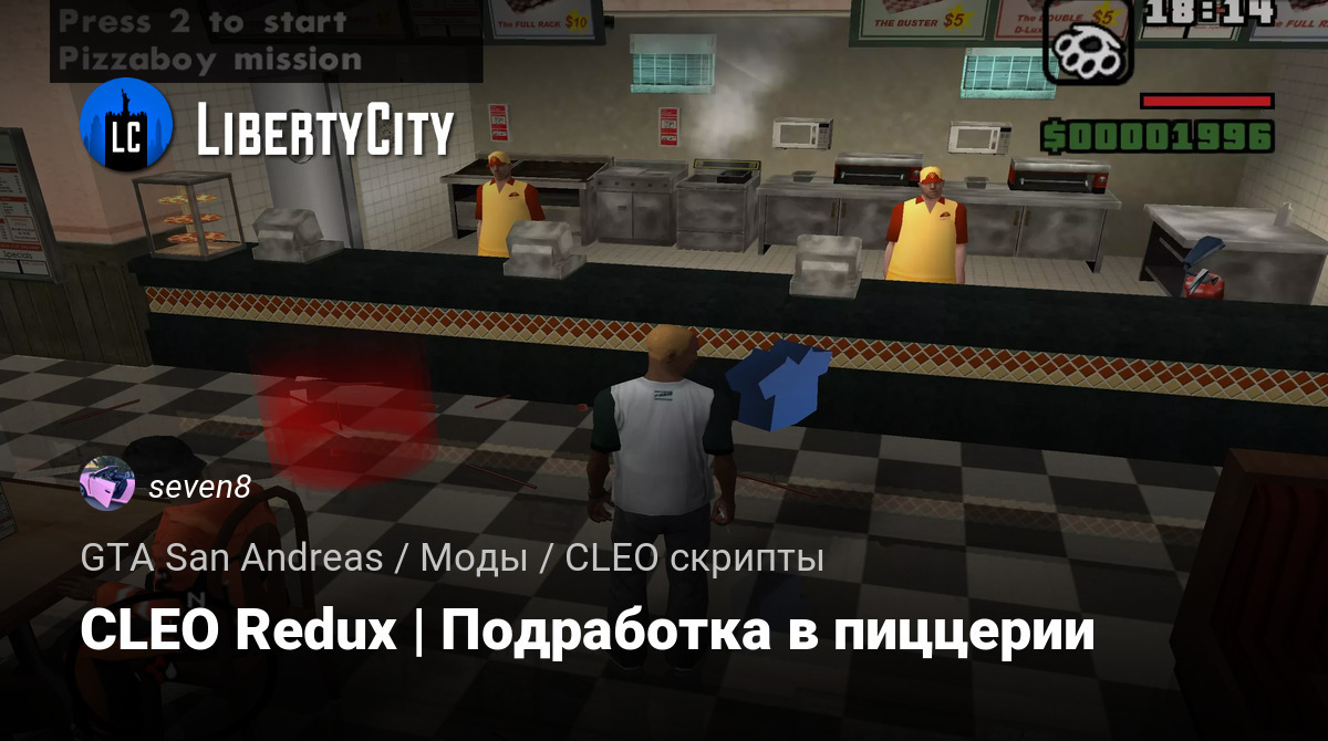 Мод требует установки CLEO Redux. Установка: переместить файл pizza.ts в папку CLEO.