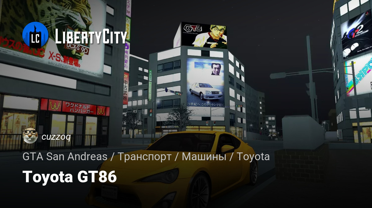 Toyota GT86 для GTA San Andreas. Транспорт адаптирован под: • Гос. Знаки ( license_frame/nomer ) • Винилы ( remap_body ) • Поворотники ( leftflash/rightflash ) • Задний ход ( shader_rear ) • Оптика ( vehiclelights128 ) • Тонировка ( lob_steklo/pere...