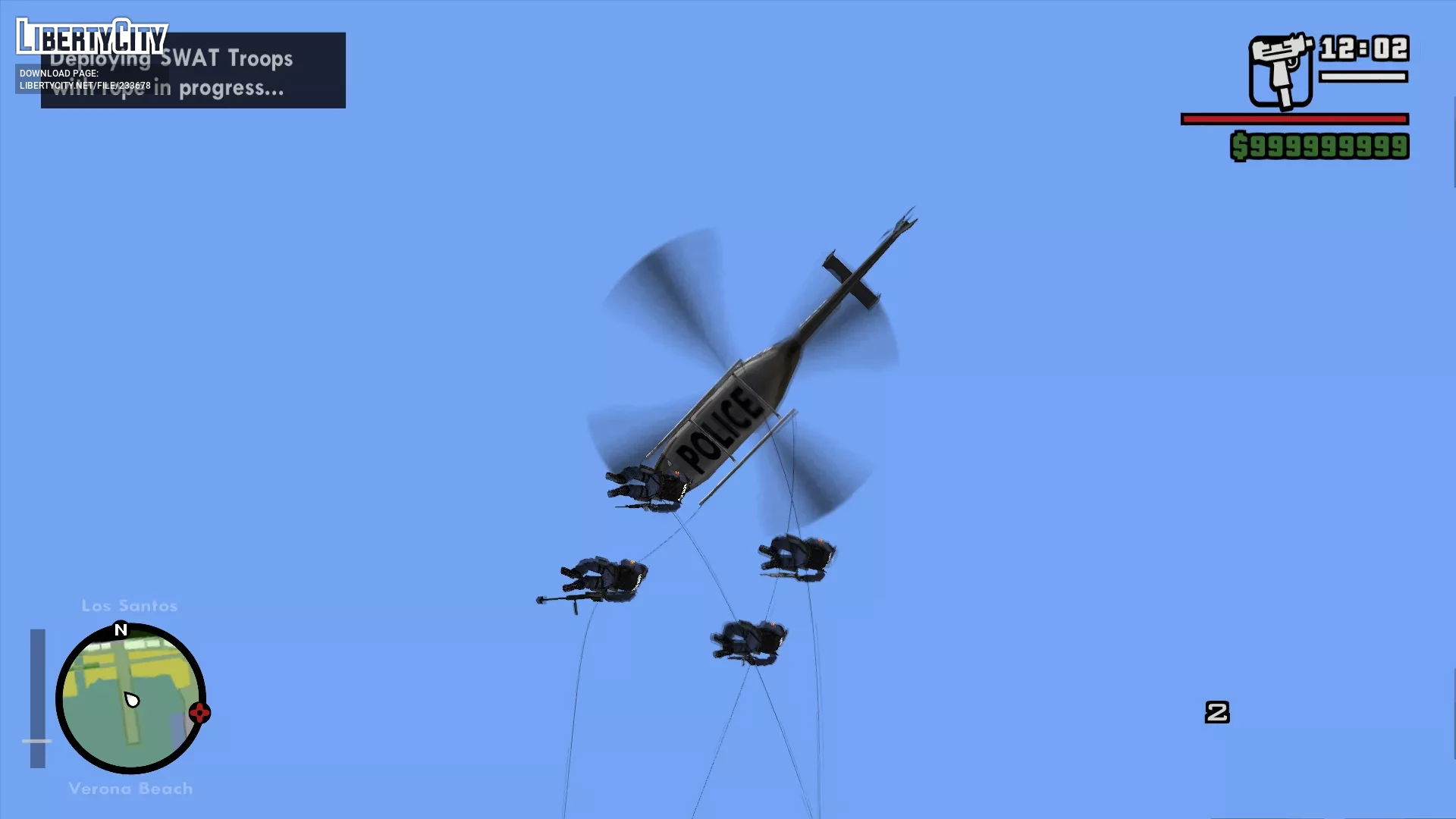 С помощью этого мода CLEO вы можете разместить отряд спецназа в своем любимом полицейском вертолете, и он, несомненно, с легкостью поможет вам в борьбе с вашими заклятыми врагами из банды. Не волнуйтесь, этот отряд спецназа на стороне вашей банды (Семьи Гроув-стрит) и будет сражаться с полицией, когда у вас возникнут проблемы!