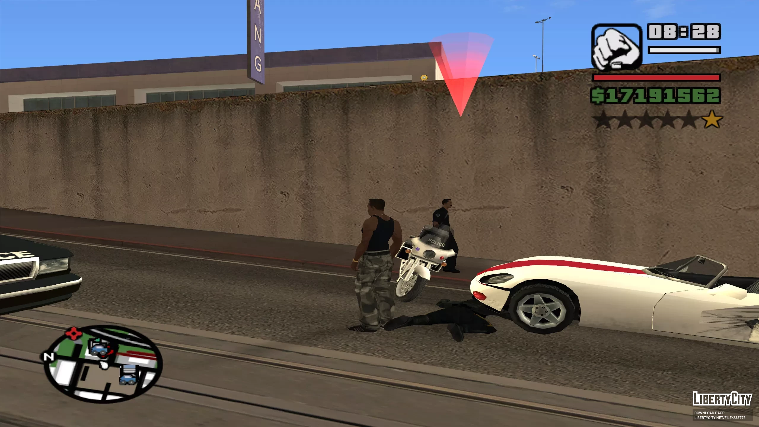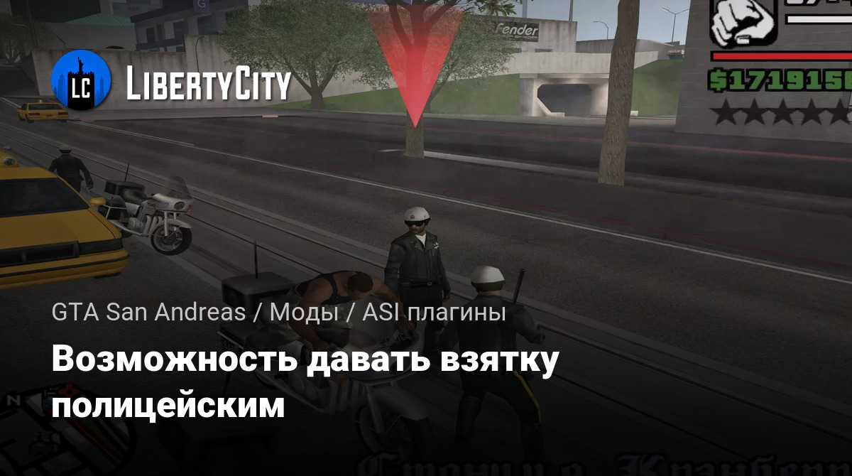 Этот CLEO-мод добавляет в GTA San Andreas возможность дать взятку полицейскому, чтобы избежать розыска низкого уровня (1 звезда). Вместо ухода от погони или ожидания, пока розыск исчезнет, вы можете решить проблему на месте с помощью денег.