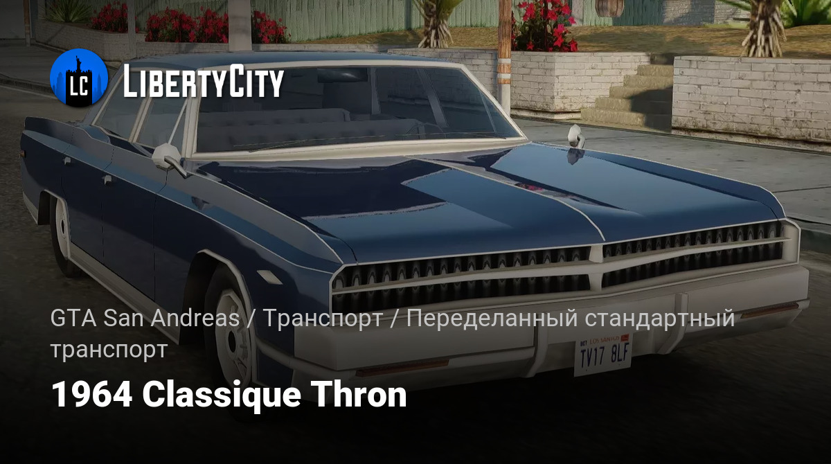 1964 Classique Thron — это вымышленный классический седан, вдохновлённый американскими автомобилями 60-х годов, который часто встречается в модах для серии игр GTA. Машина отличается массивным кузовом, хромированными деталями и атмосферой ретро, идеально подходя для олдскульных поездок по виртуальному городу.