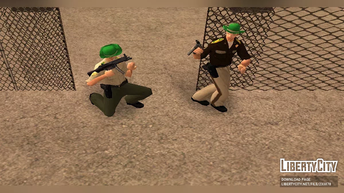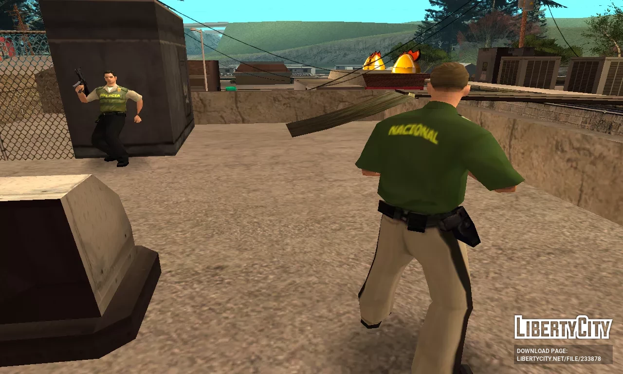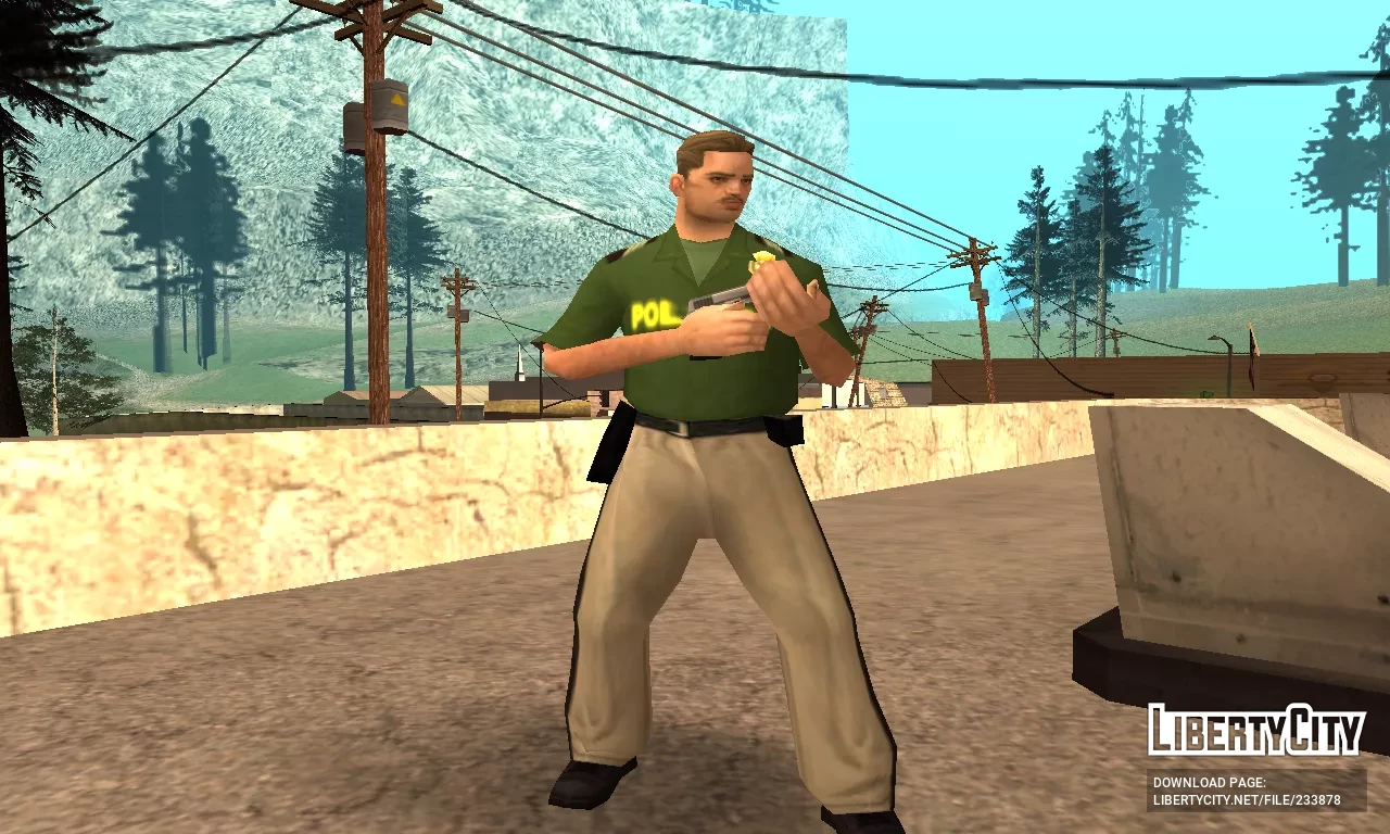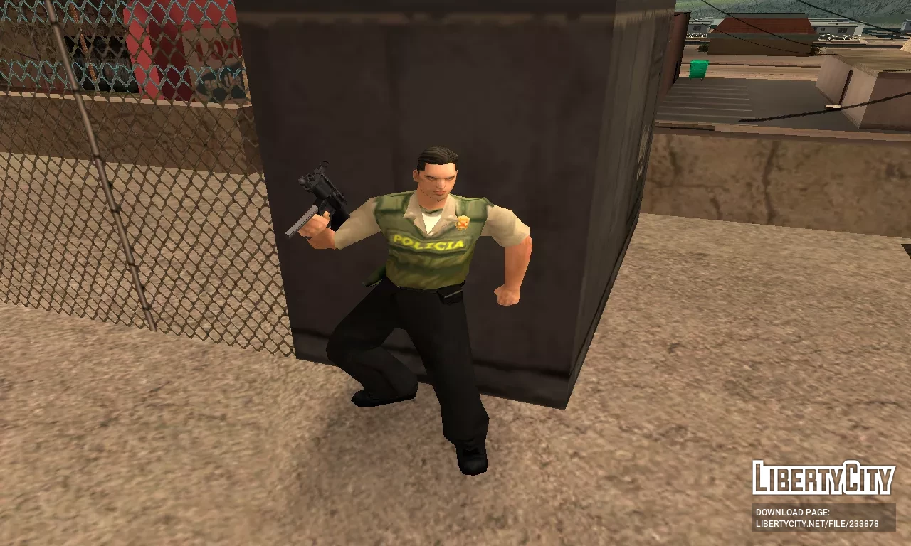- Полиция Лос-Сантоса: Вооруженный офицер: носит светло-зеленый жилет с надписью "Полиция" спереди и "Национальная" сзади, а также светлую футболку.