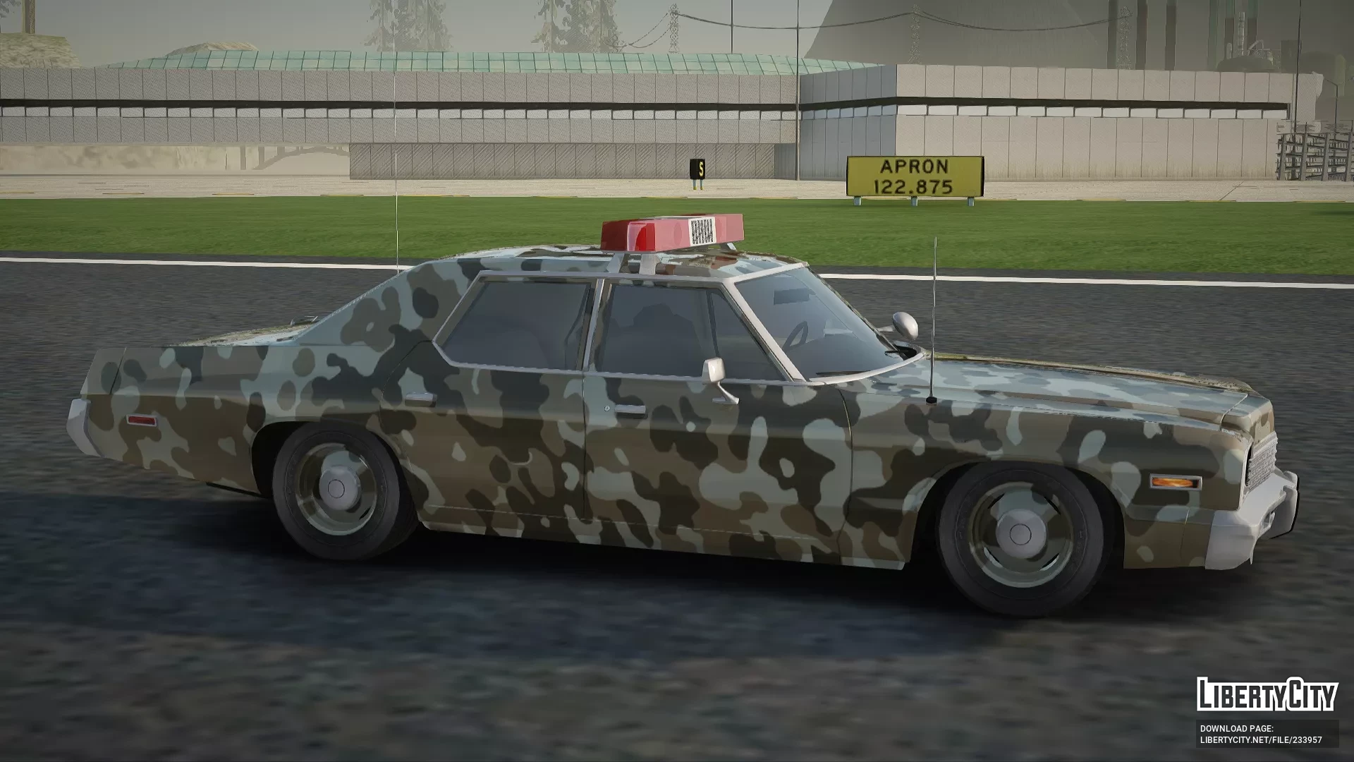 Dodge Monaco 1974 Camo — это классический американский полицейский автомобиль, отличающийся характерным камуфляжным окрасом и массивным кузовом. Машина оснащена проблесковыми маячками и дополнительными антеннами, что подчёркивает её служебное назначение. Такой автомобиль часто выбирают для патрулирования и спецопераций благодаря его надёжности и узнаваемому внешнему виду.