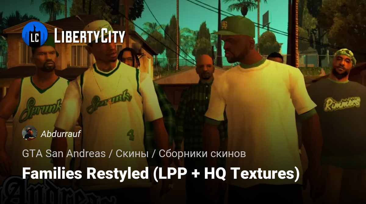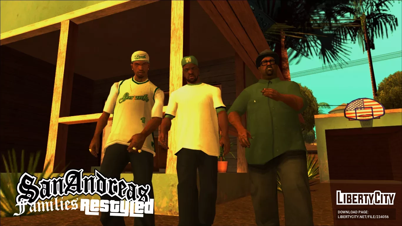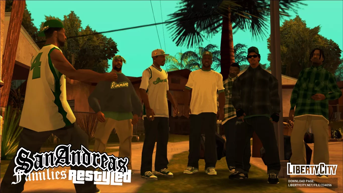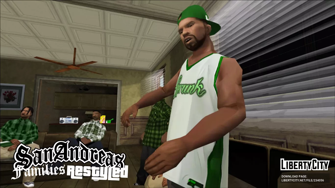 Данный мод для GTA San Andreas полностью обновляет визуальный стиль банды Grove Street Families. В моде переработаны только текстуры скинов, без изменения DFF-моделей, что сохраняет оригинальную анимацию и полную совместимость с оригинальной игрой.