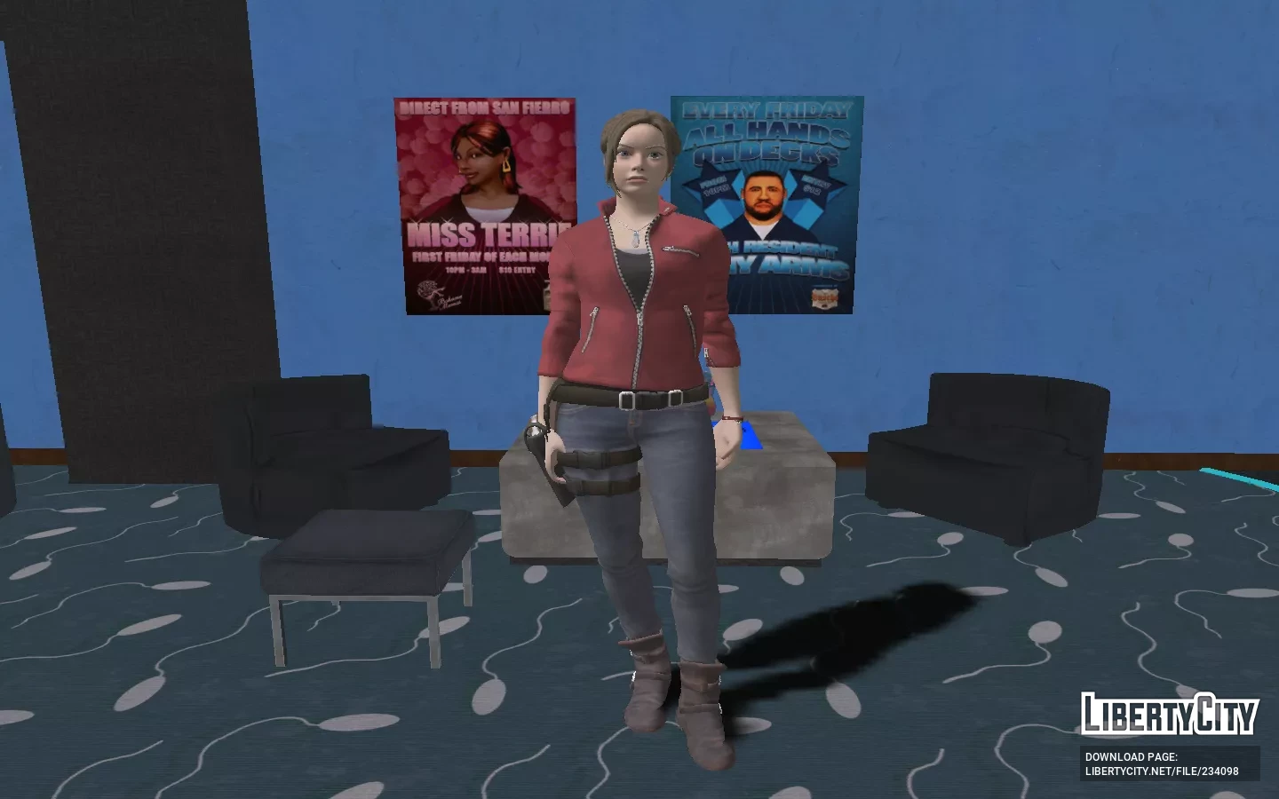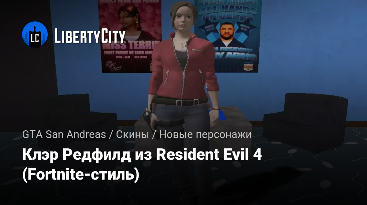Этот мод добавляет в GTA San Andreas скин Клэр Редфилд (из серии Resident Evil) в стилистике игры Fortnite. Модель создана в тематике вселенной San Andreas и подходит для создания необычных игровых ситуаций и не только.