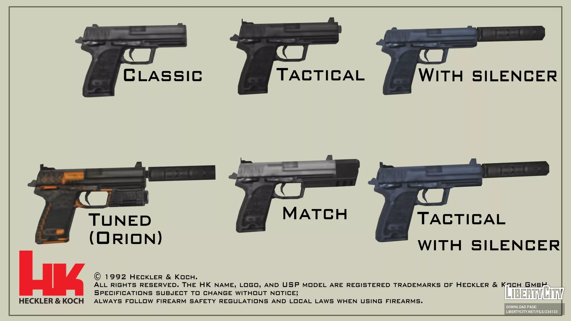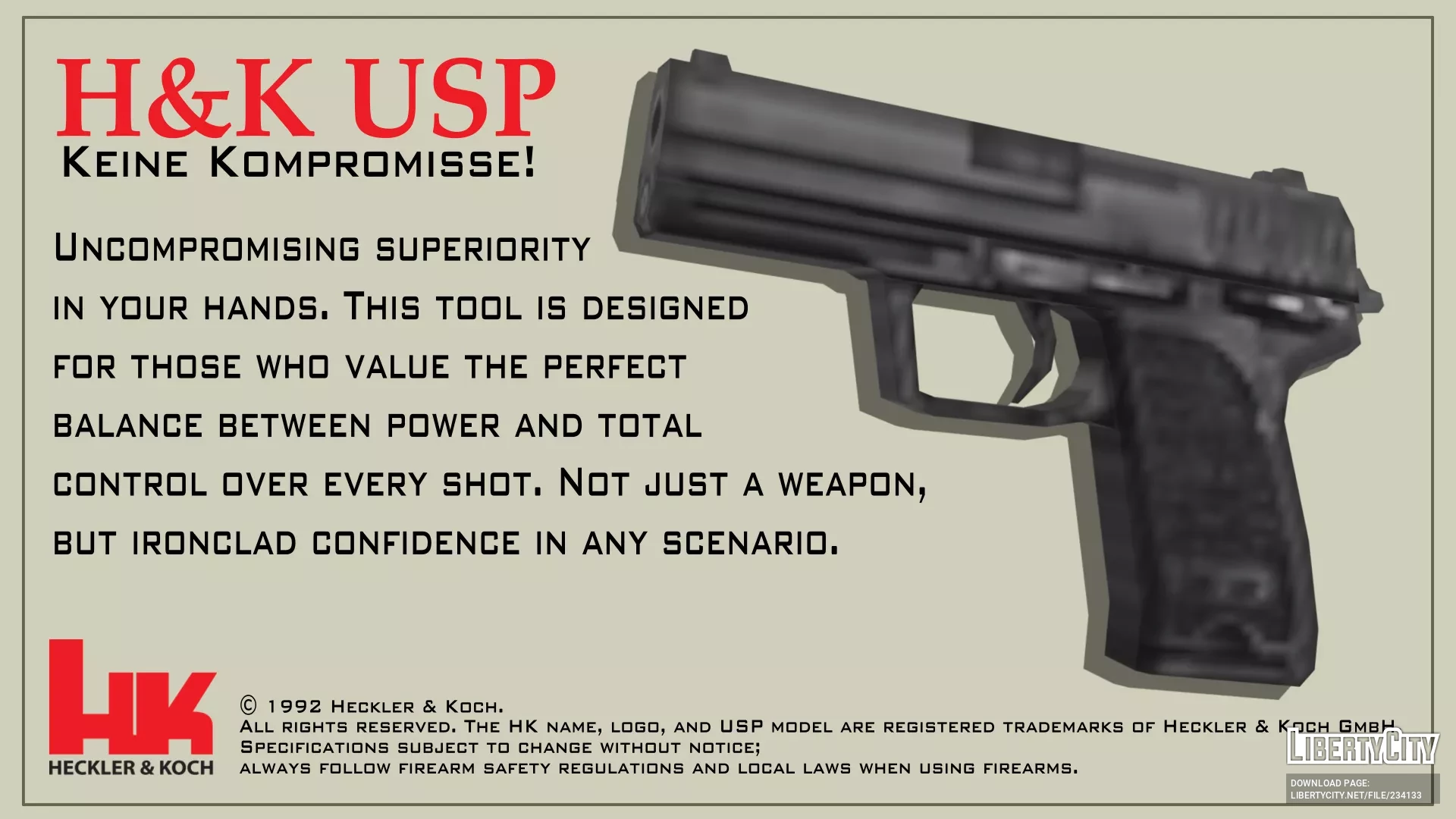HK USP — Немецкий полуавтоматический пистолет. Широко известен своей надежностью, точностью и убойной силой. Стоит на вооружении армии и полиции множества стран. Не оставляет компромиссов.