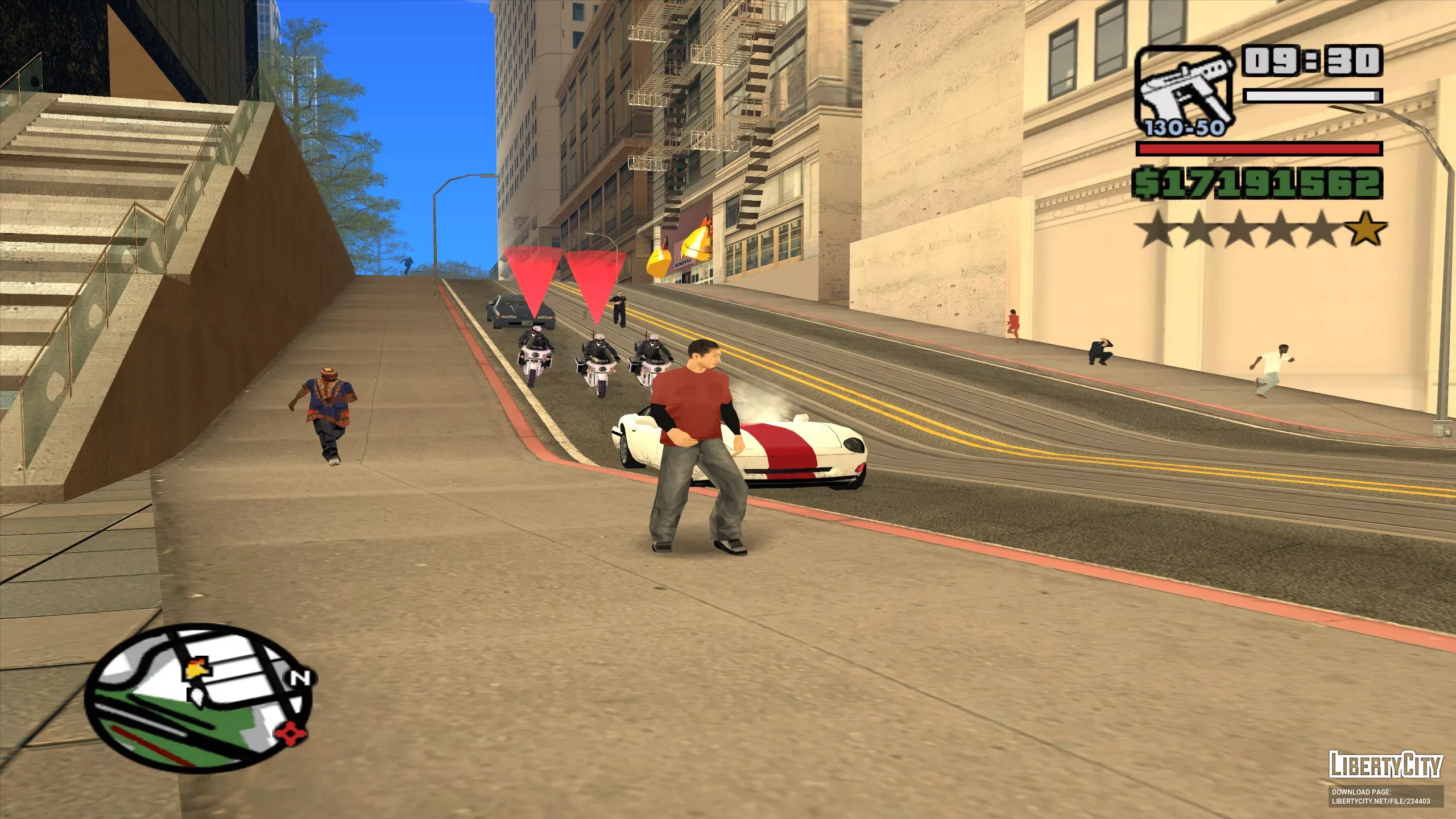 Помните игры Need for Speed? Когда вас преследуют полицейские, они отображаются на карте. Этот мод также будет показывать преследующих вас полицейских на вашем радаре. Если вы нарушите закон, находящиеся поблизости полицейские будут отмечены красным маркером.