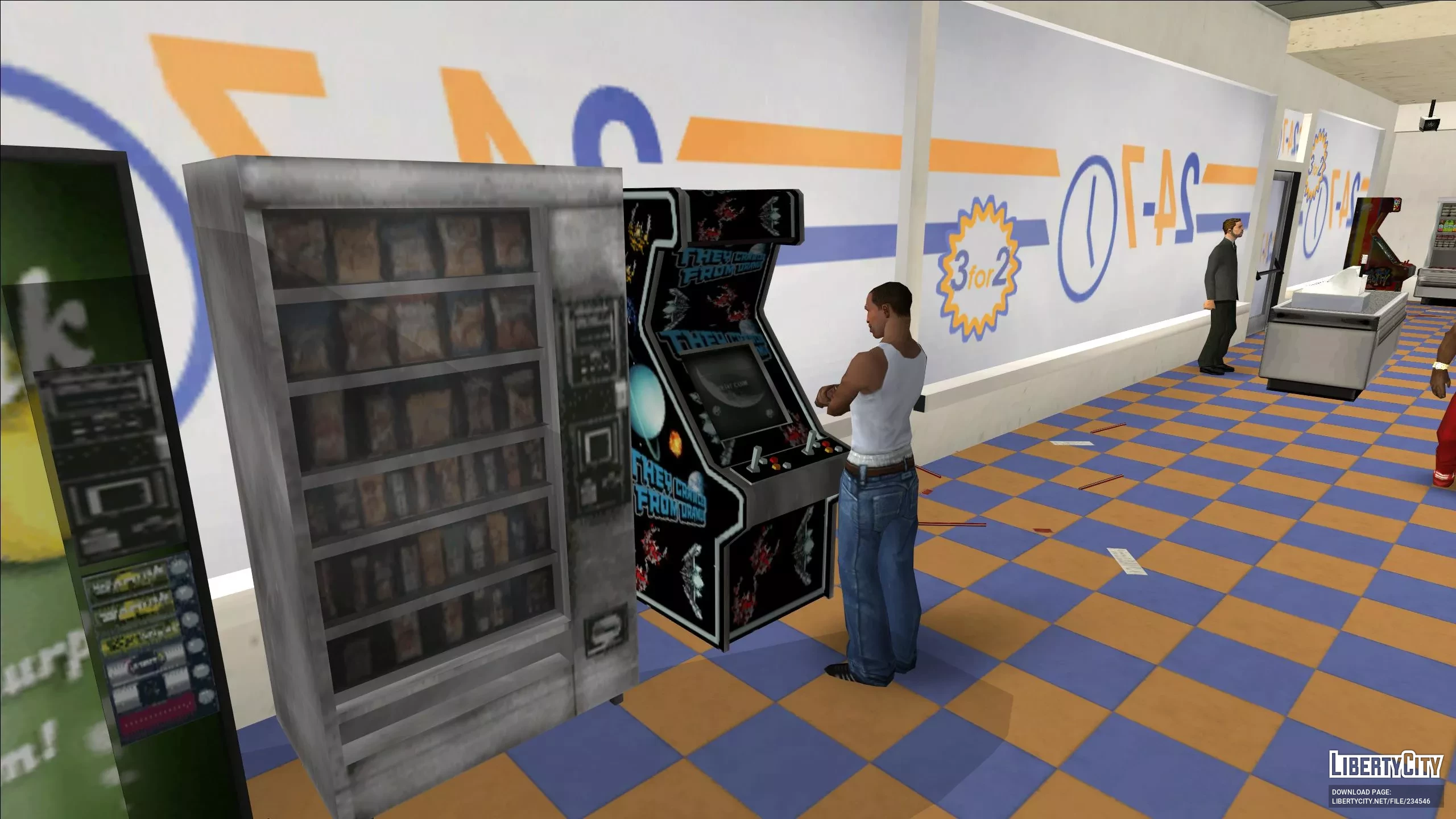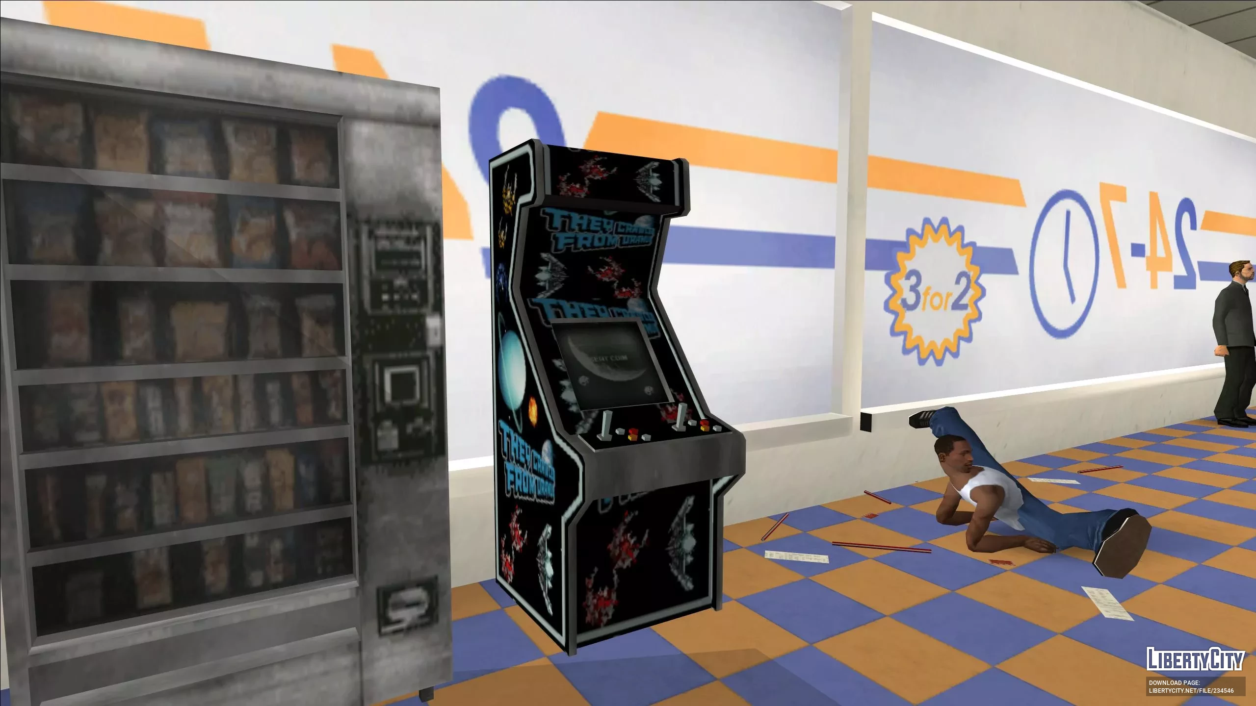 Данная модификация исправляет ошибку, которую допустили разработчики при работе с игровыми автоматами. В игре есть 4 игровой автомат, который привязан к игре They Crawled From Uranus, в которую еще можно поиграть в доме CJ'я на приставке. Этот автомат не имеет своей текстуры и поэтому использует таковую от автомата с игрой Go Go Space Monkey. Я считаю, что разработчики поставили эту текстуру как placeholder(затычка короче), а потом и вовсе забыли про него, оставив его недоделанным. Не найдя никаких модов на эту тему, я решил взять все в свои руки. Я исправил модель и нарисовал новую текстуру для этого автомата, так что теперь не будет путаницы с игровыми автоматами.