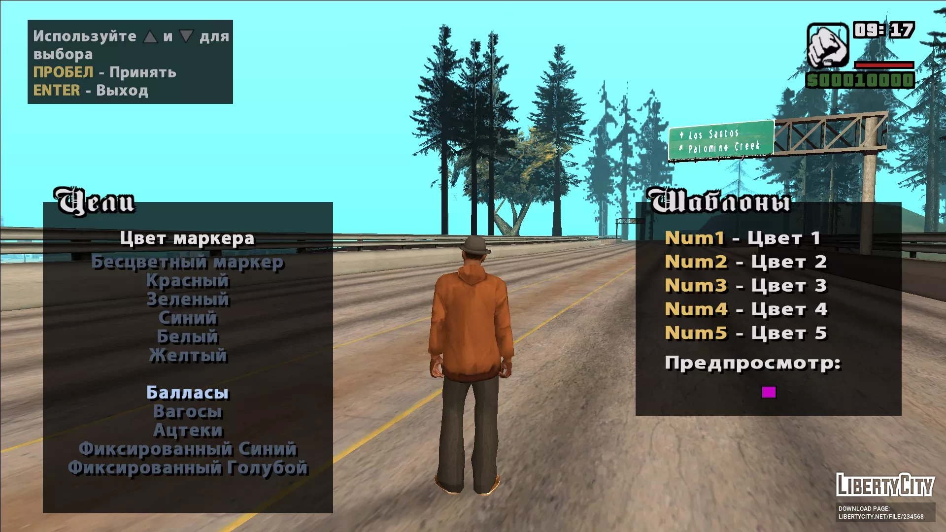 - Добавлены 5 новых цветов: Балласы, Вагосы, Ацтеки, Фиксированный Синий и Фиксированный Голубой.