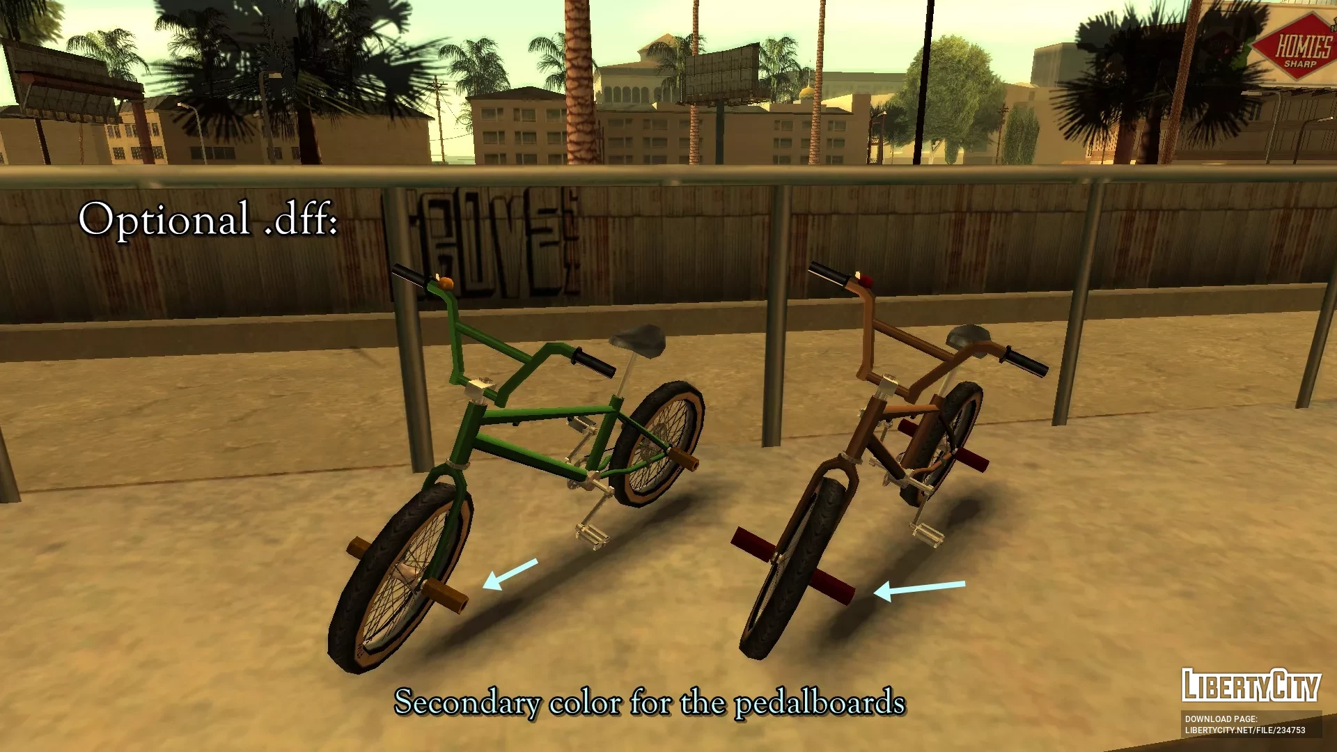 - The mod includes two types of BMX bikes: one with metal footpegs and another with paintable footpegs. The bell is paintable on all versions and has 8 available color palettes in addition to the customizable colors in the Transfender.