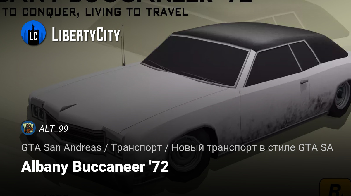 Albany Buccaneer '72 — американский двухдверный маслкар. Выпускался с 70-х годов компанией Albany. Мощное сердце и стиль классического американского мустанга. Залейте полный бак 98-го и отправляйтесь покорять Сан Андреас!
