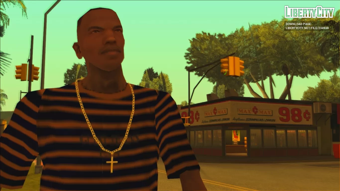 Новая золотая цепочка для CJ, вдохновлённая образом Кейна из культового фильма Menace II Society (Угроза обществу). Аксессуар выполнен в классическом стиле 90-х и отлично вписывается в атмосферу улиц Лос-Сантоса. Цепочка прекрасно дополняет уличный стиль и идеально подходит для создания образа в духе гангста-культуры 90-х.