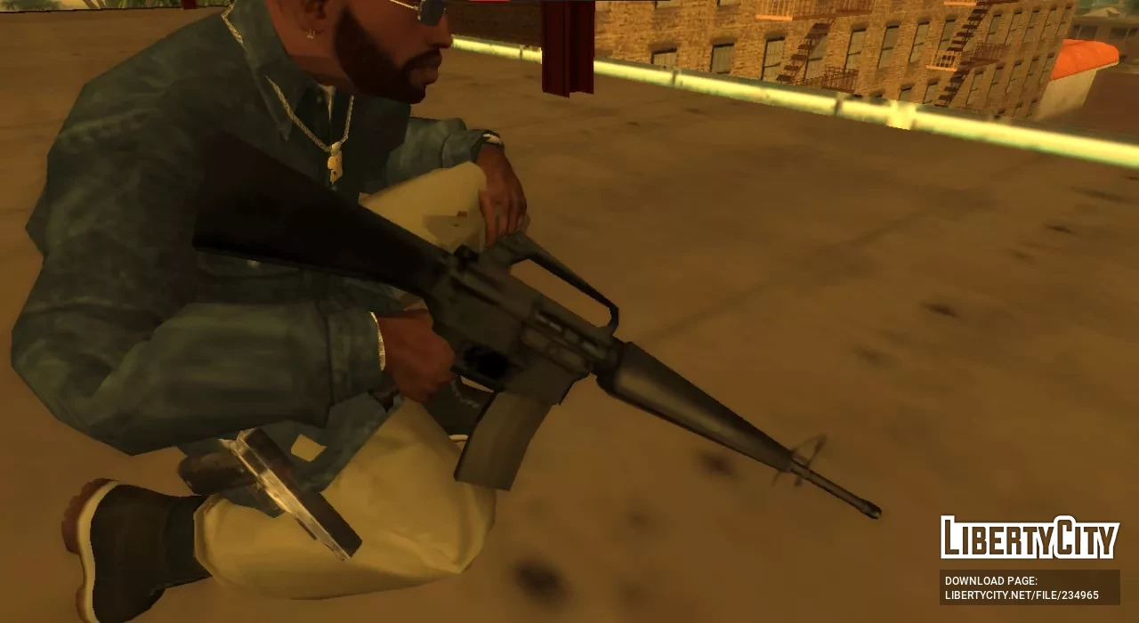 Данная модель сделана с нуля, и идеально вписывается в игру за счет не совсем проработанной модели и текстуры. В руках сидит отлично. В архиве лежит настройка — скорострельность и емкость хуже М4, но имеется высокая точность и большая убойная сила.
