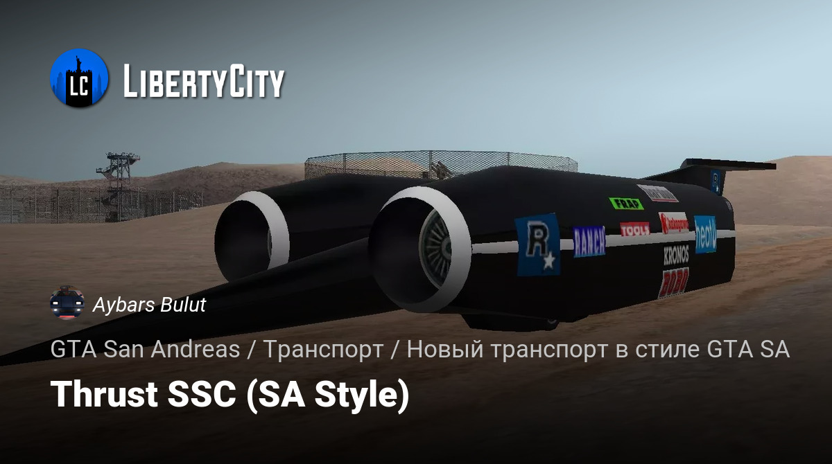 Я очень удивлен, что никто не создал Thrust SSC для GTA SA. Поэтому я сделал его сам. Единственная проблема заключается в том, что управление слишком нестабильное, поэтому будьте осторожны, пытаясь преодолеть звуковой барьер.
