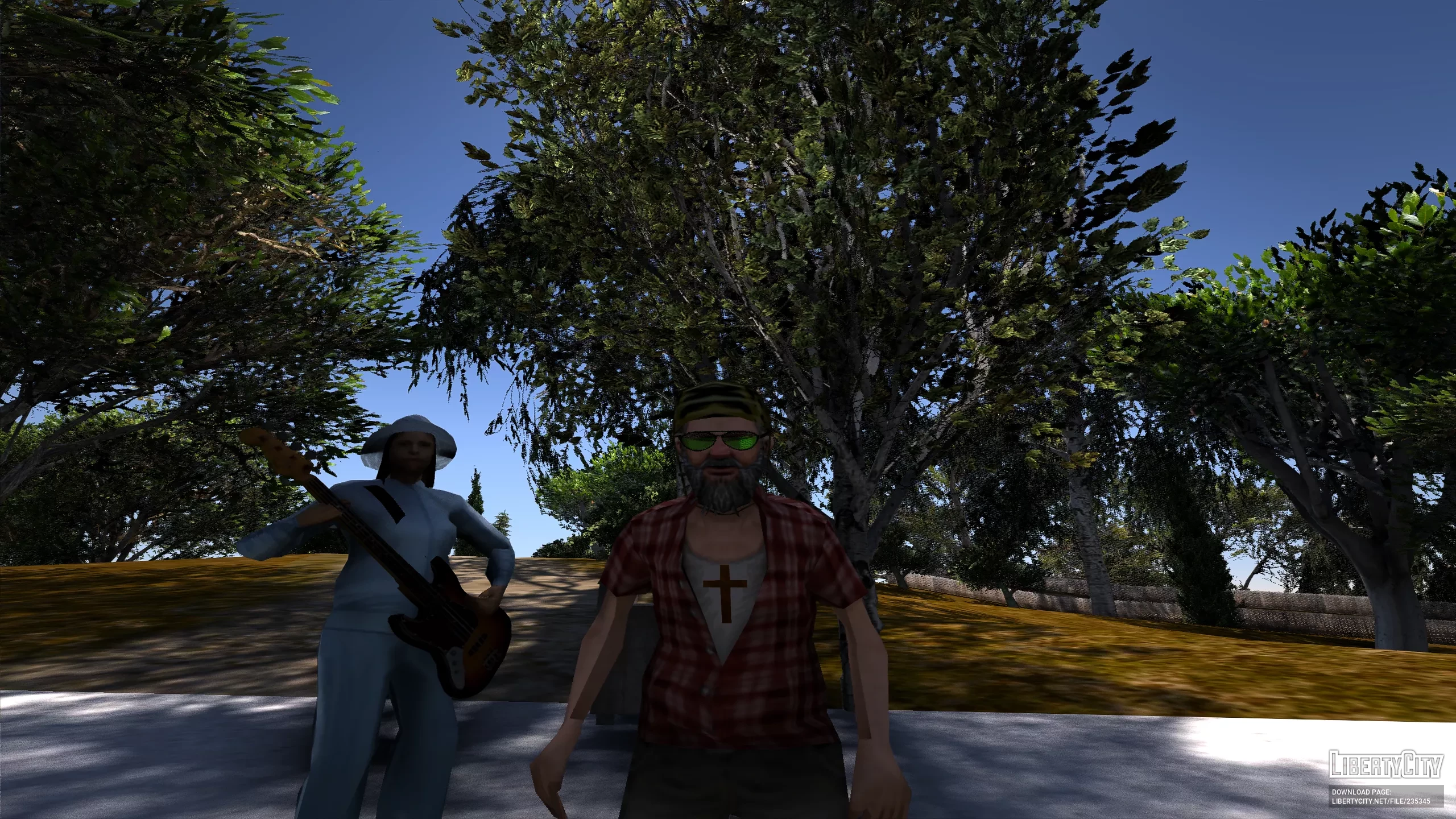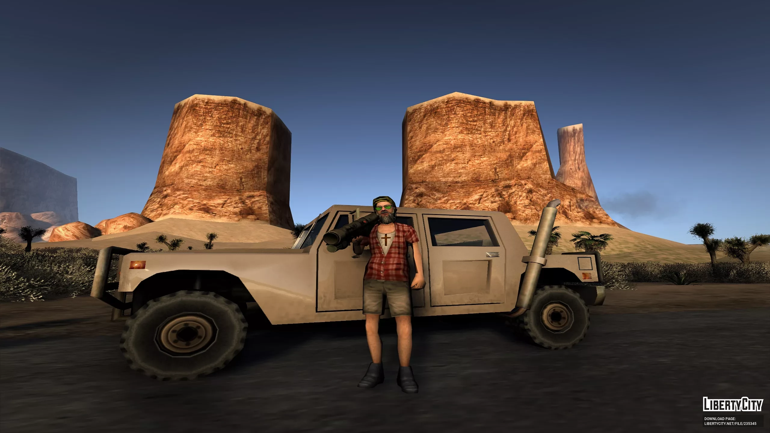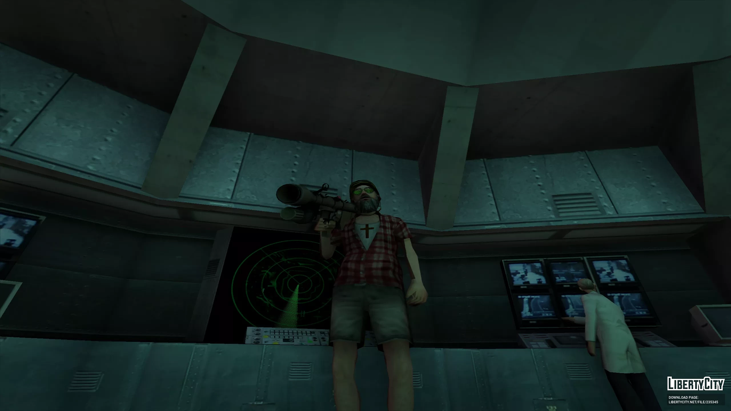 На голове у него каска, а глаза скрывают зелёные очки, придающие образу загадочность и немного безумной харизмы. Густая борода делает персонажа ещё более суровым, а крест Божий на груди добавляет символичности и характера.