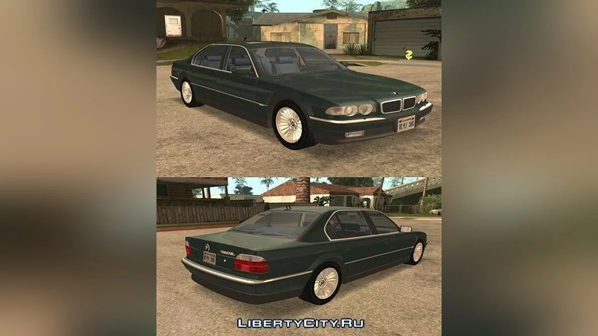 BMW 750IL E38 для GTA San Andreas Особенности: -Своя тень -SA номера -Тонировка сзади -Качественная модель -Качественный салон -Правильная посадка ГГ -Имеются повреждения -Настроенная коллизия -Затекстуренное дно -ЗD двигатель -Бензобак взрывается п...